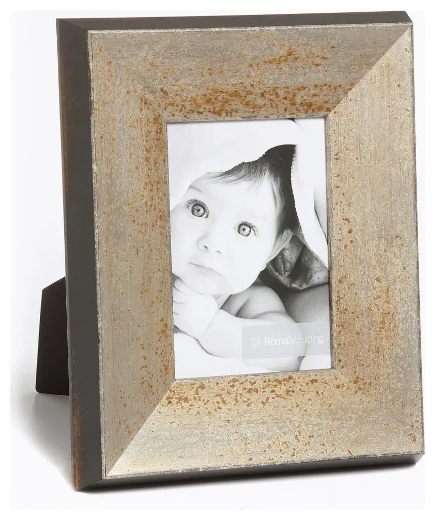 Fits 5" x 5" pictures. The frame is 2 3/4" wide. They are made from 100% natural wood, with crystal clear shatter-resistant glass, and an easel backing. These frames can be displayed as landscape or portrait. Age brings With it a subtle beauty. Our Cabane mouldings rustic charm, rich hues and subtle highlights of color are hand applied and distressed by skilled artisans whose careful attention to detail evokes the beauty attained only by time and nature.