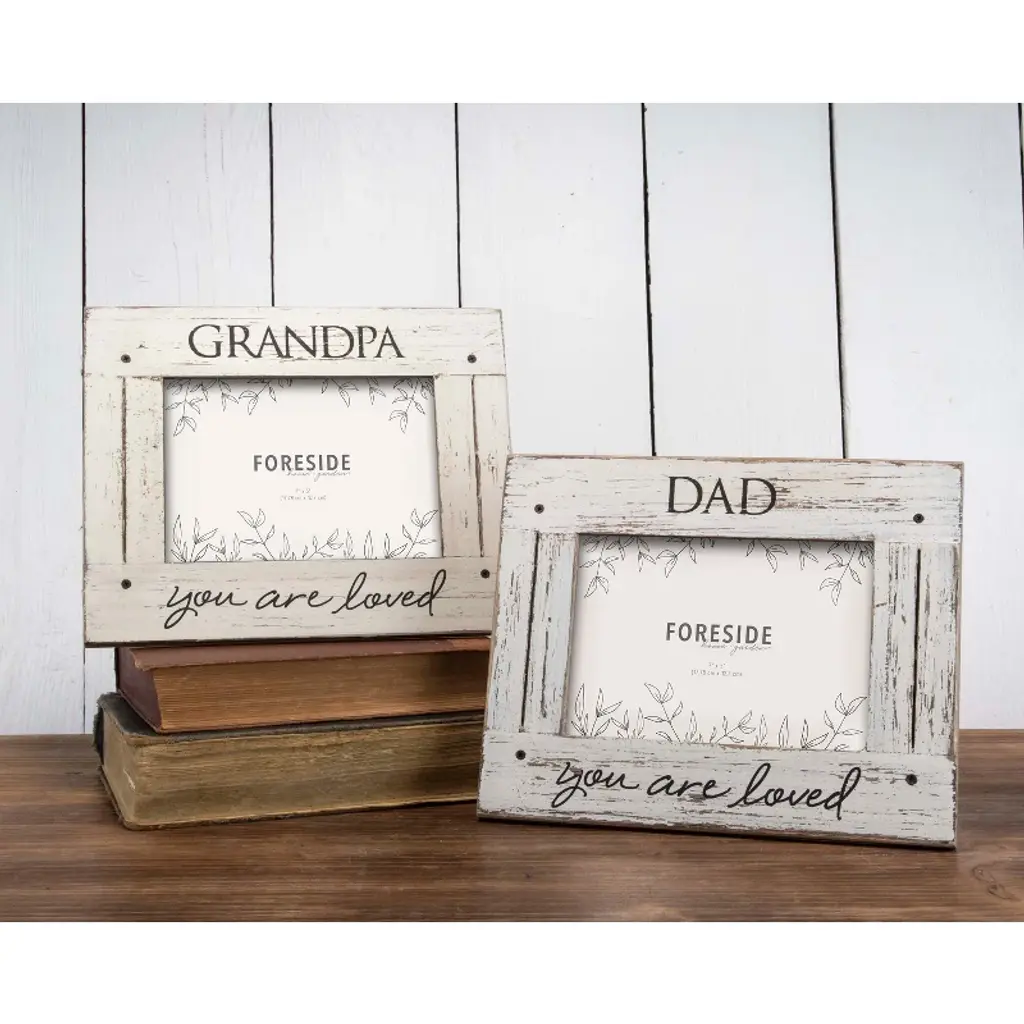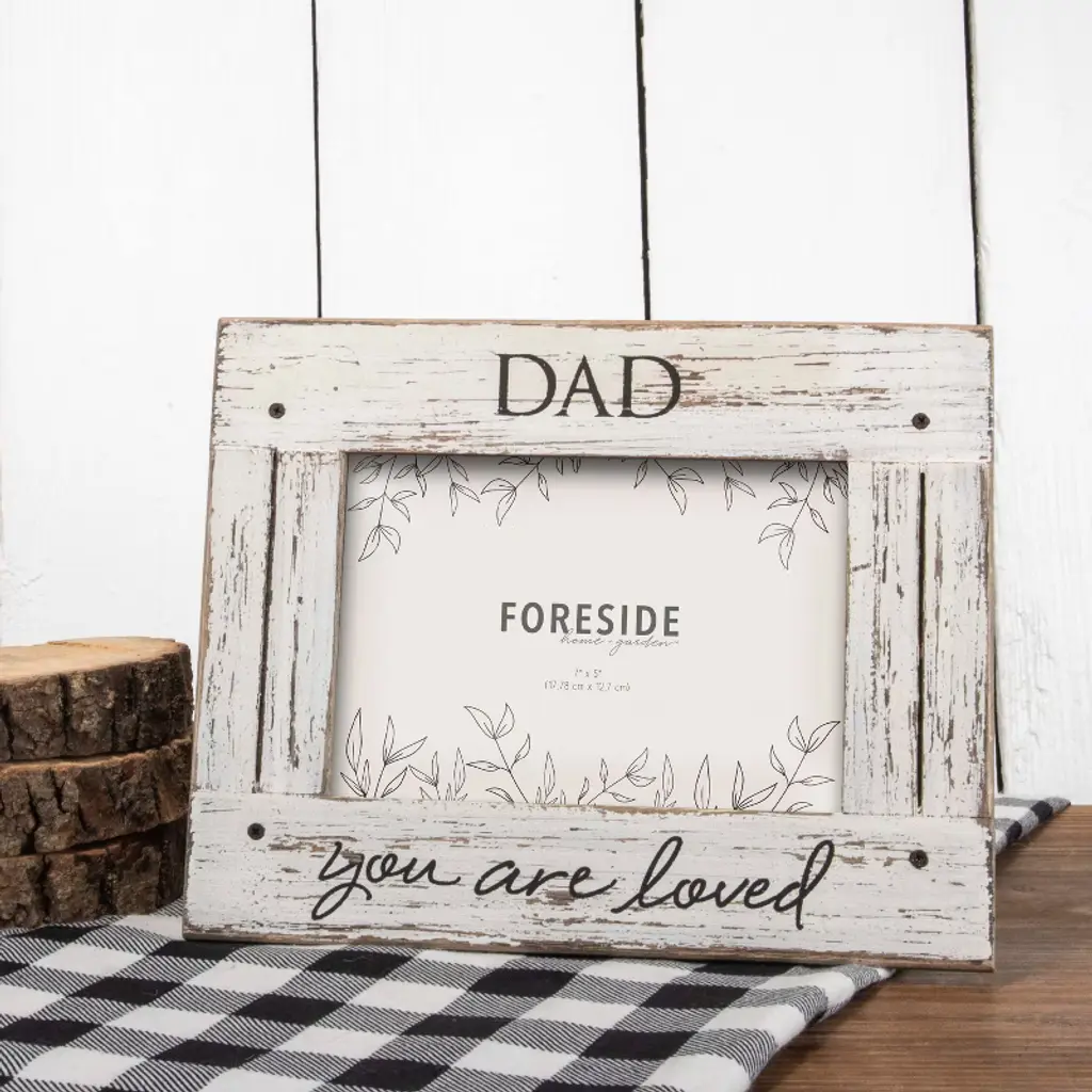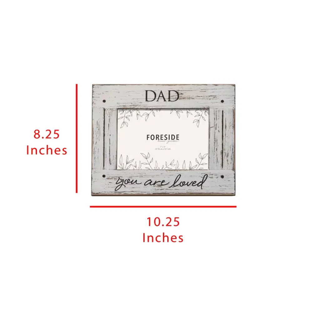 5X7 Cream "Dad You Are Loved" Distressed Whitewashed Wood Photo Frame W/ Glass Pane