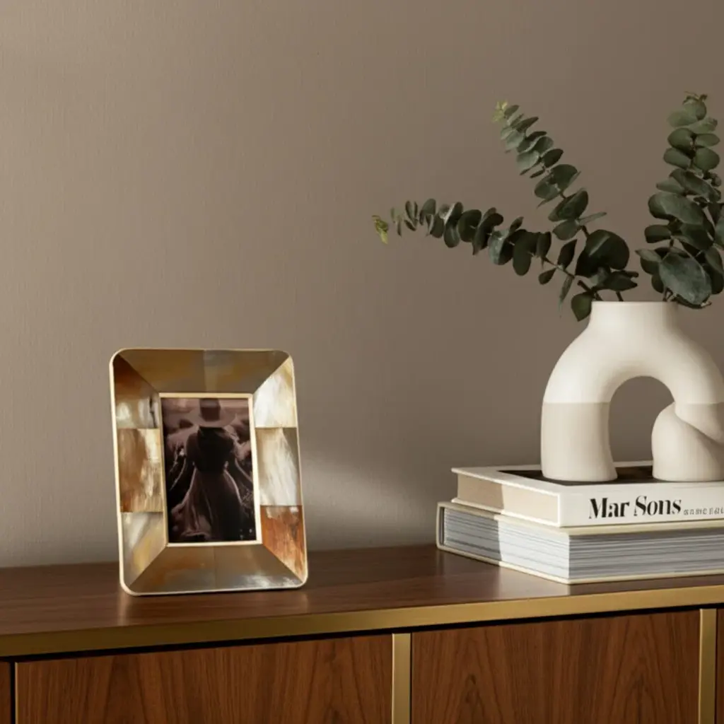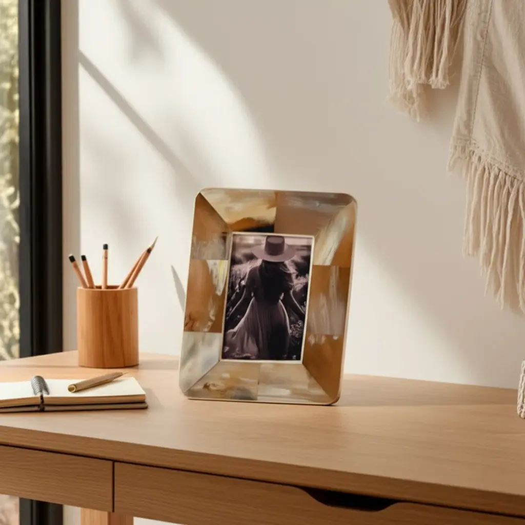 5X7 Curved Edge Horn Photo Frame, Tan Multi
