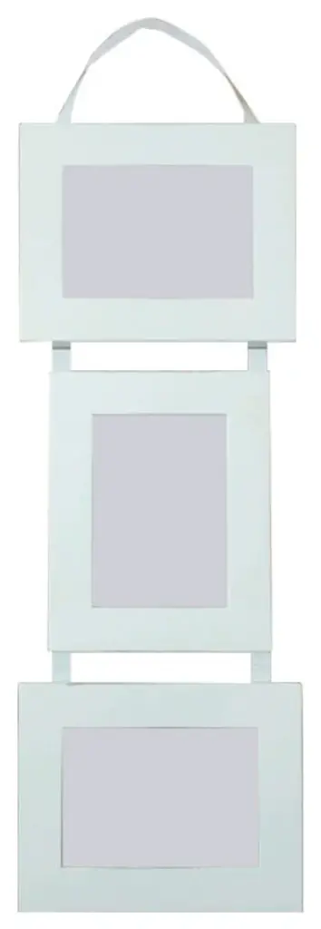 Collage Picture Frame Set- Three 5x7 Basic Frames on RibbonYour nursery, child''s bedroom, or family room deserves a photo display this adorable! Our multi-opening frames, shown here in "basic black" make a unique wall display or the perfect gift. Three individual wood frames are connected by a hanging ribbon. Just drape the ribbon over a decorative wall hook or coat hook.A collage picture frame combination that allows you to hang 5x7 portraits both horizontally and vertically. This multi-frame set includes two landscape openings and one portrait photo opening. Crafted from solid wood, this black-painted frame includes three 5x7 frames connected on a black hanging ribbon. Hand distressed edges.Model: PRO-BLK-5x7-LPL-RIB-AShipping Weight: 5lbsDimensions: 31.75H x 10.5W x.75 DOpening Size: 5"x7" (3)Product Includes: Glass, Backing, Hanging RibbonMaterials Used: Solid Poplar WoodMade in: USA