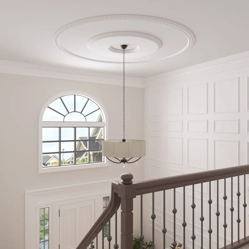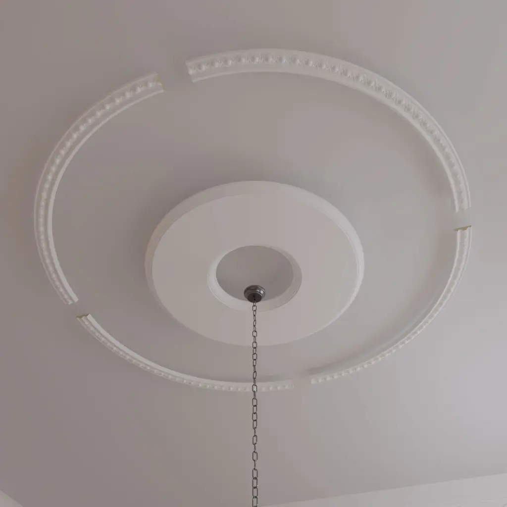 Ceiling rings are often used in conjunction with ceiling medallions in highlighting focal points like chandeliers and ceiling fans. However, ceiling rings can als be used on the wall to accent mirrors, photos and photo frames.•Modeled after original historical patterns and designs•Solid urethane for maximum durability and detail•Lightweight for quick and easy installation•Factory primed and ready for paint or faux finish•Can be cut, drilled, glued, or screwed•Can be used on the interior or exterior•1/4 of complete circle
