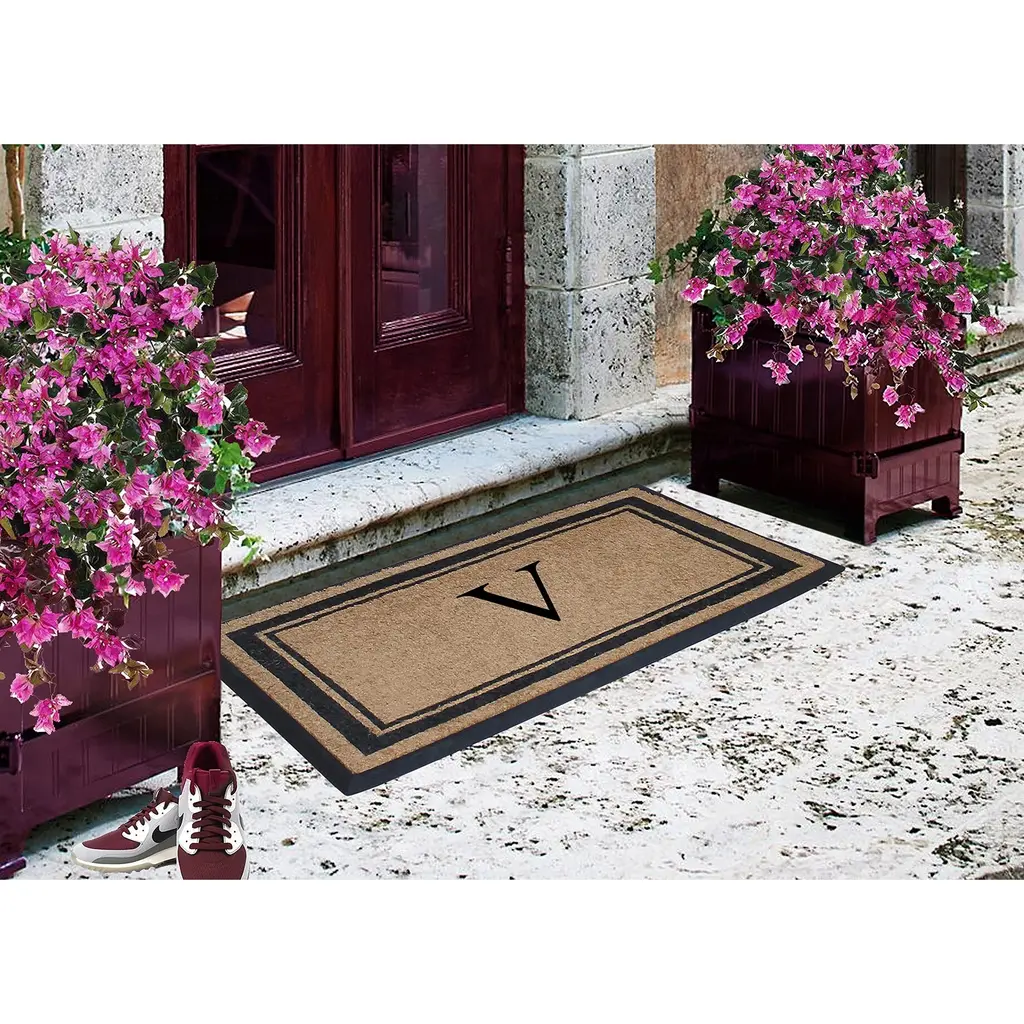 A1hc Picture Frame Natural Rubber & Coir Large Monogrammed Doormat 24"x48" - F
