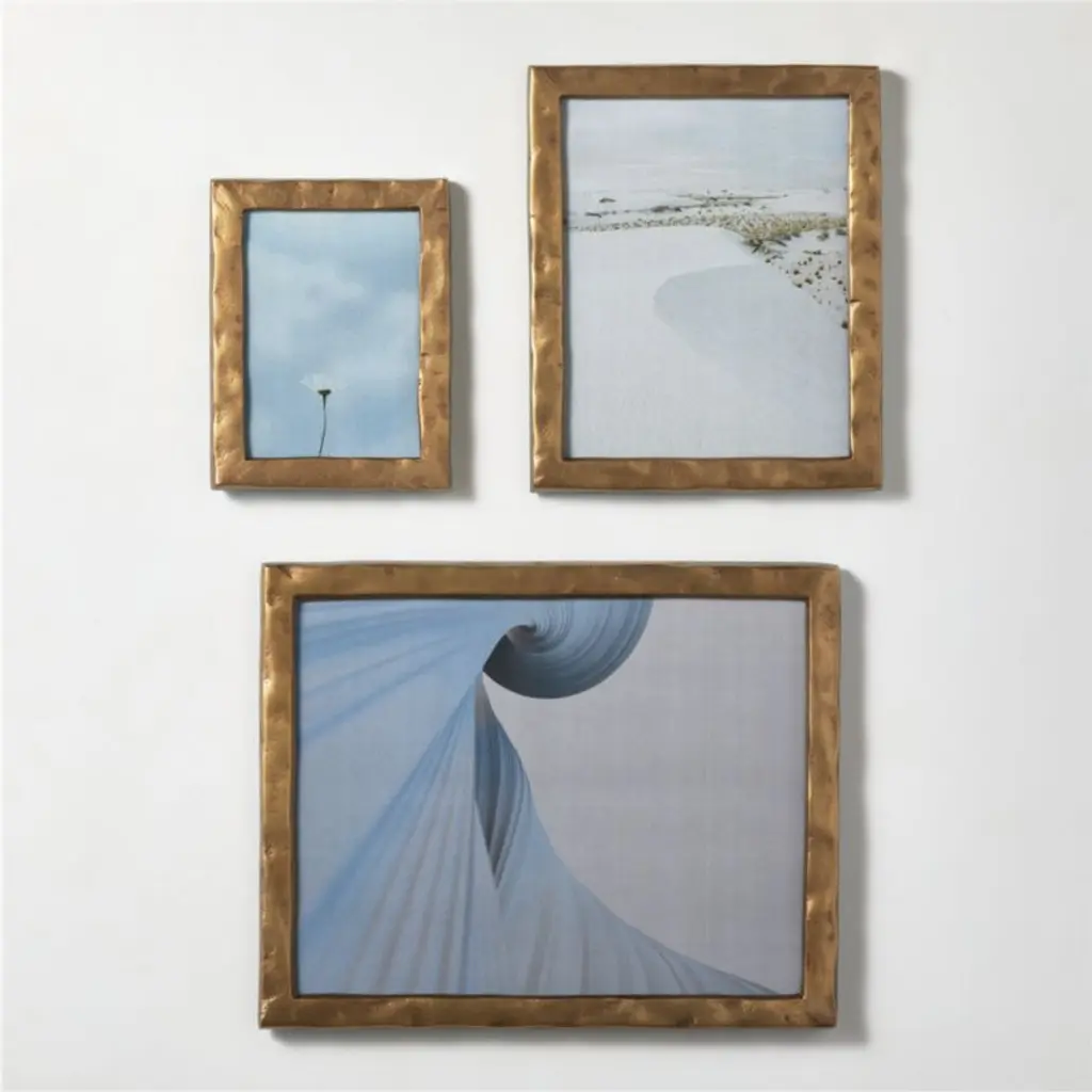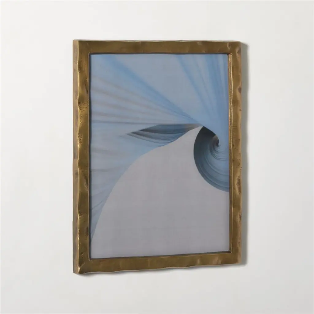 Handcrafted with a traditional sand-casting technique, metal picture frame features an organic silhouette full of raw, rough-hewn character. Adds an elegant vintage feel to the bedroom or entryway. Pair with the Abel mirror for a coordinated look. CB2 exclusive.Due to the nature of the material, brass patina will vary in color and darken over time.