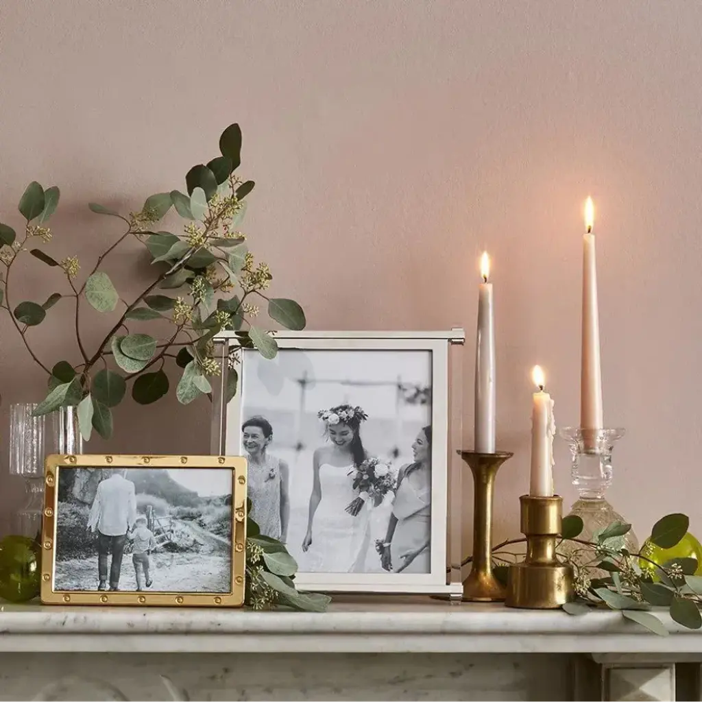 A stylish Silver Plate Frame with Clear Acrylic pillars create a stylish sense of formality to this frame. Able to stand portrait or landscape with a beautiful velvet backstand and gift boxed.