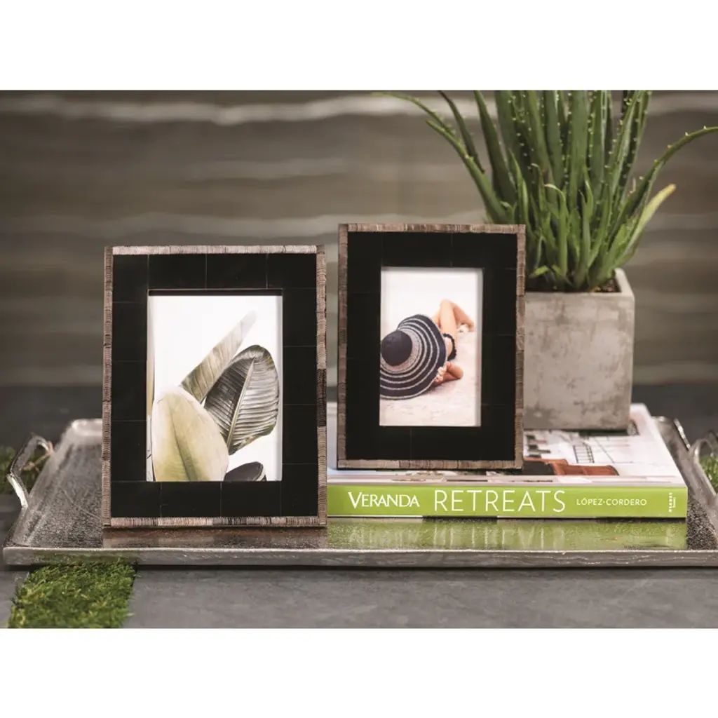 The dramatic markings and variations inherent to natural horn give this eye-catching photo unrivaled character and stunning beauty. This chiseled horn picture frame is either polished or chiseled to a smooth sheen that showcases the horn’s striking natural beauty.