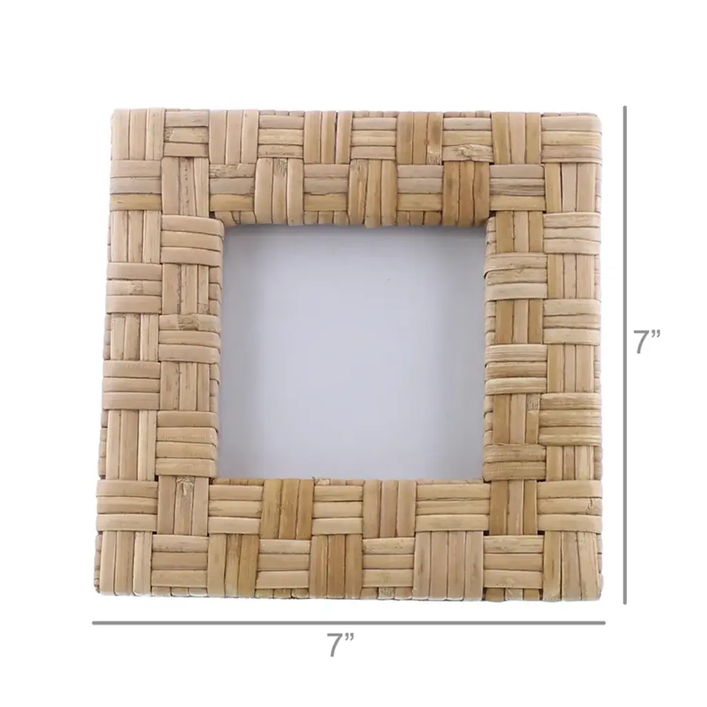 This woven rattan picture frame adds coastal farmhouse charm to your home. The rattan's natural color complements the basketweave design, which is sure to enhance whichever family photo you display. The frame has a cardboard backing and a glass photo protector that keeps the dust off your favorite photos. Just snap in a photo, and then pick a spot on your desk, console table, or bookshelf for this single wicker frame. Plus, you can display it either horizontally or vertically.