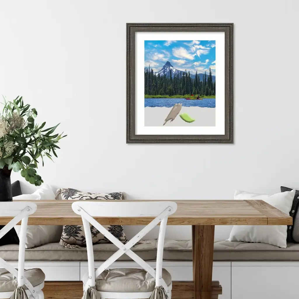 Give your home or office the finishing touch with this 100% real wood picture frame featuring the Upcycled Brown gray frame. A beautiful frame showcases special photos, awards, and mementos and can turn any piece of art into beautiful home decor. Individually made using traditional custom framing techniques, it has the quality you would expect from your local frame shop and holds its value with premium finishing that can be appreciated up close. Because of our attention to detail and focus on artistry, architects, interior designers, and homeowners alike choose this picture frame to create beautiful living spaces.
