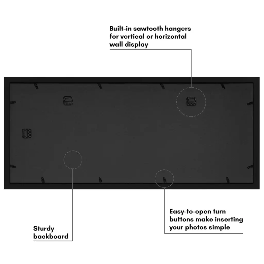 Americanflat 12x30 Collage Picture Frame - Fits One 8X10 Photo And Eight 4X6 Photos Or One 12x30 Photo - Black