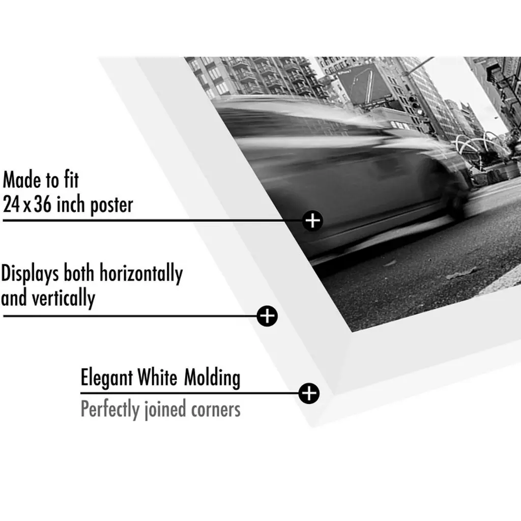 Elevate your home decor with the Americanflat 24x36 poster frame in white. With its classic design, this white frame is the perfect choice for showcasing your cherished memories and favorite photos. Crafted with a wide frame border and a polished plexiglass front, this 24x36 frame adds a touch of style to any space. Designed for convenience and durability, this white picture frame features a sturdy backboard that securely holds your pictures in place. Whether displaying horizontal or vertical images, this gallery style frame offers versatile hanging options with included hardware for easy installation. Say goodbye to complicated framing processes with our easy-to-use turn buttons, allowing you to effortlessly insert and update your photos whenever you desire. Made from high-quality engineered wood (MDF) material, these white frames are built to last, ensuring they become cherished keepsakes for years to come. Don't settle for ordinary frames. Invest in lasting quality and timeless style with this photo frame. Order your frame now and join thousands of other satisfied customers who love our products.