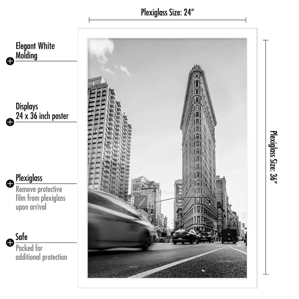 Americanflat 24x36 Inch White Poster Frame | Polished Plexiglass. Hanging Hardware Included!