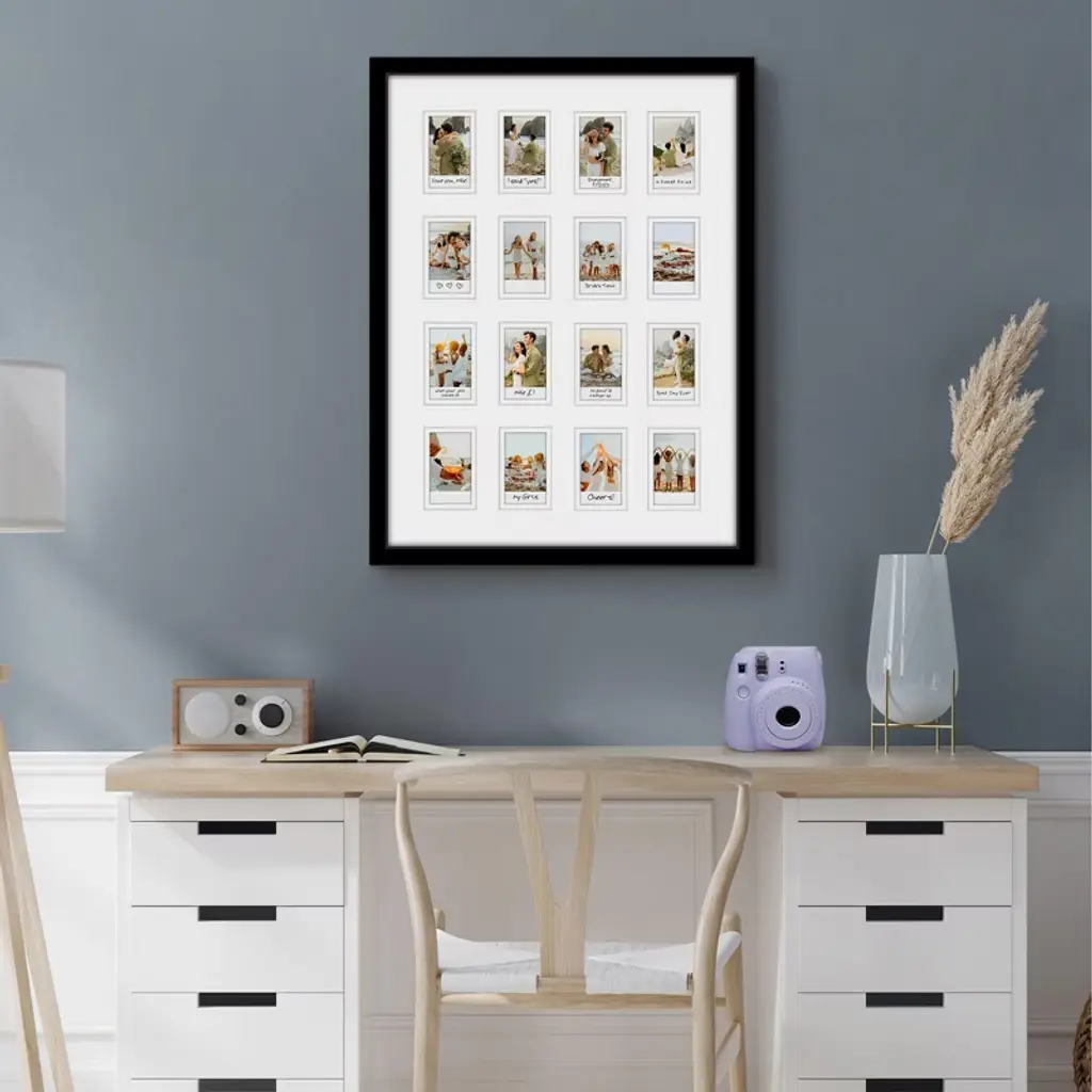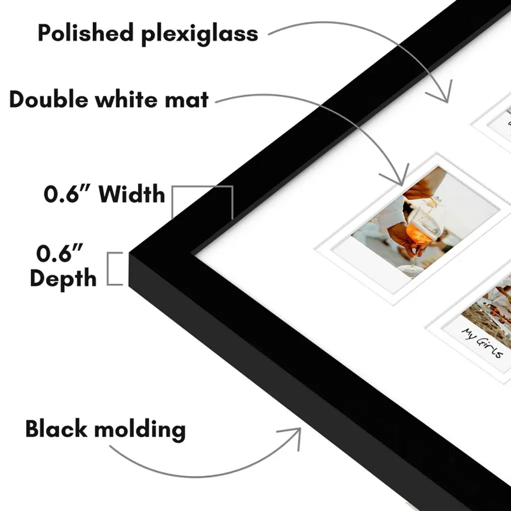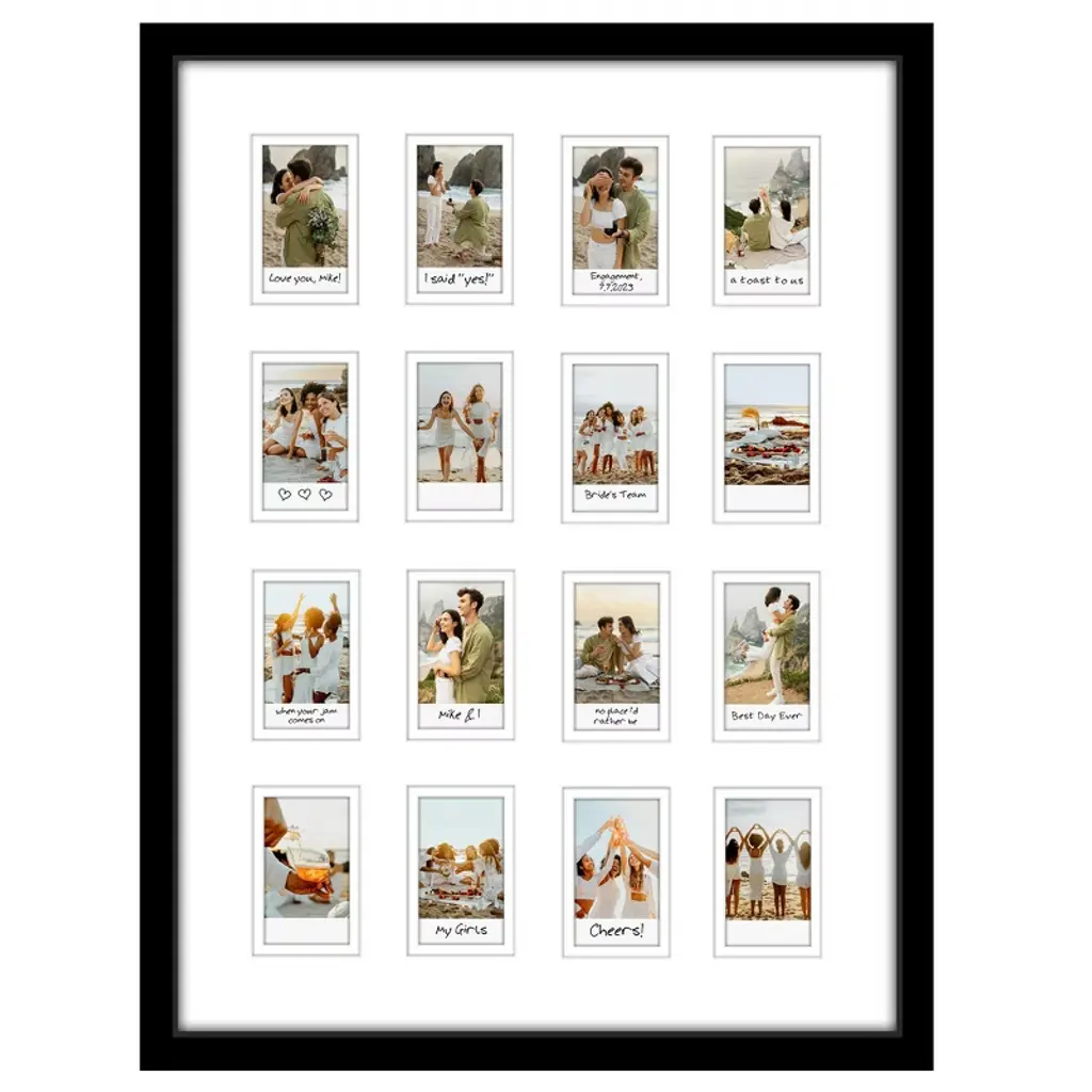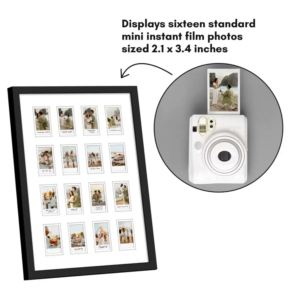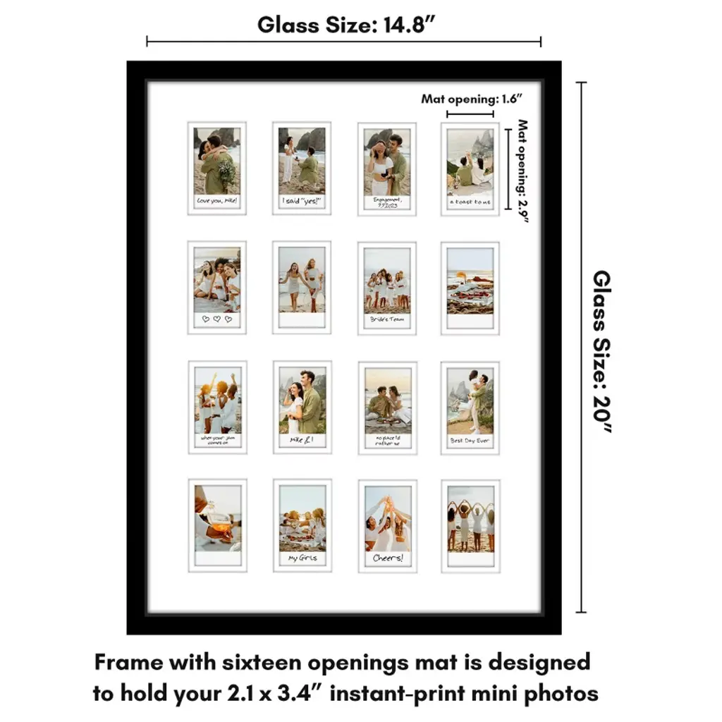 Americanflat Mini Instant Photo Collage Frame With 16 Openings And Double White Mat - Display 2.1x3.4" Photos - Black