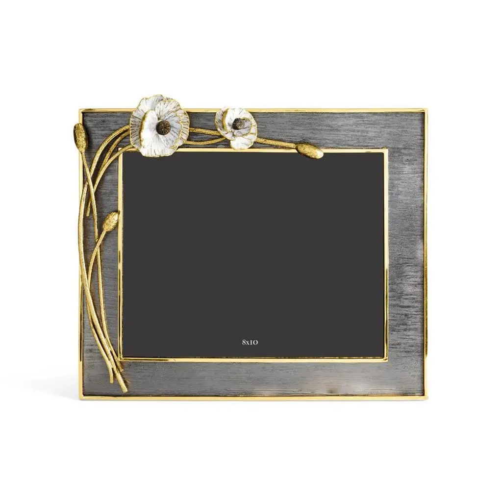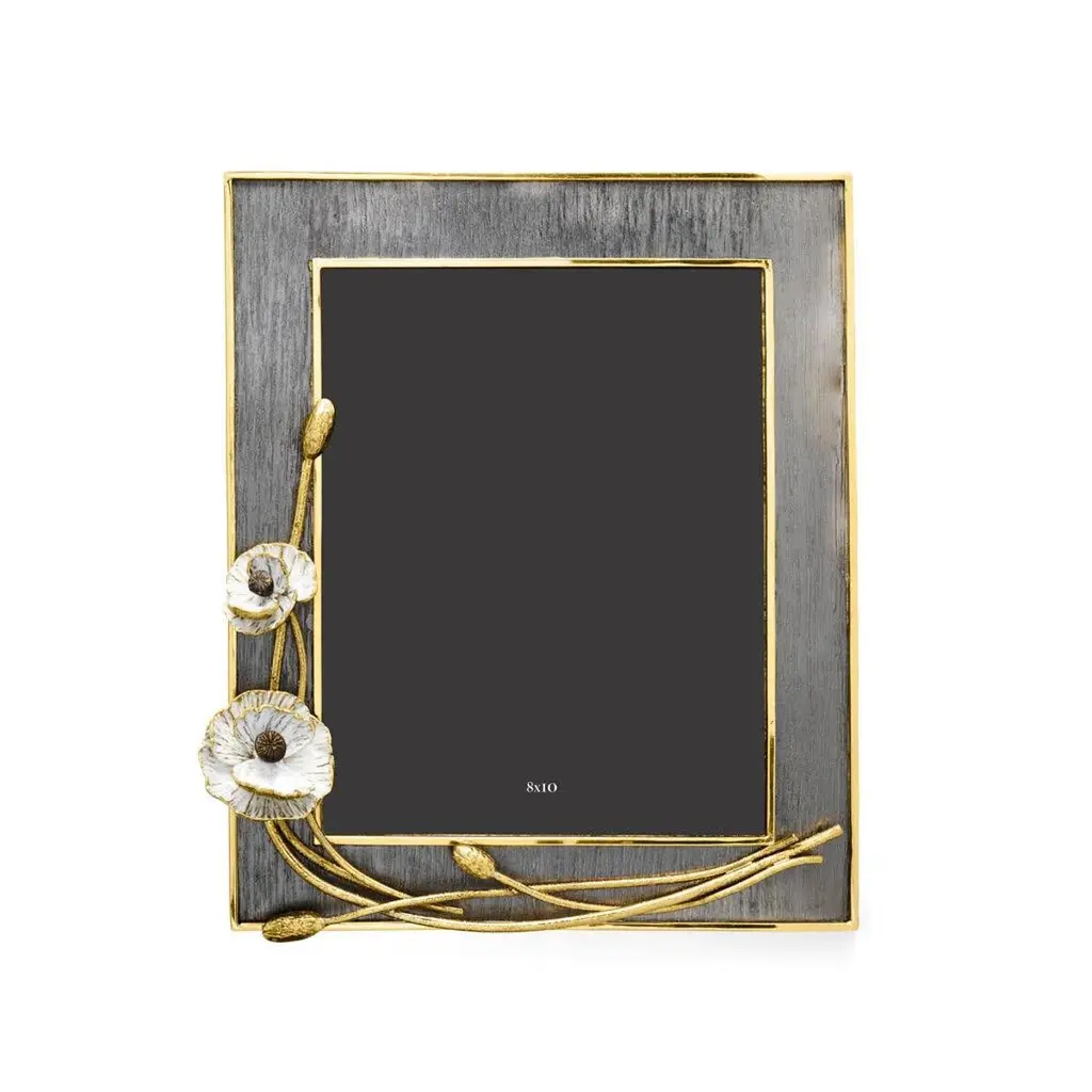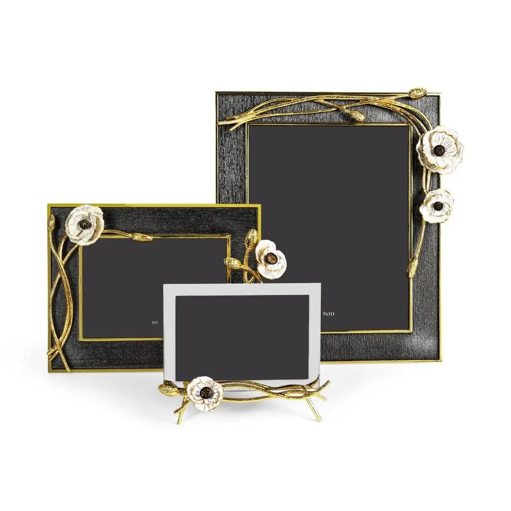 Anemone frame - Elegant flower-shaped photo frame in gold, oxidised and white enamel.DescriptionDiscover the Anemone Frame, a masterpiece inspired by the delicate beauty of anemone flowers. of anemone flowers. This 20.32cm x 25.4cm photo frame harmoniously combines elegance elegance and craftsmanship, making it the perfect addition to your home decor. The anemone flowers are known to symbolise purity, peace and good luck, adding a touch of adding a touch of positive energy to your living space.Crafted with meticulous attention to detail, this frame features a luxurious luxurious combination of gold tone, oxidised metal and white enamel. The gracefully gracefully curved stems and vibrant flowers exude femininity and allure allure, making this frame a unique and elegant choice for displaying your precious memories.Key FeaturesElegant Design: Inspired by anemone flowers, symbolising purity and peace.High Quality Materials: Made from gold tone, oxidised metal and white enamel for a luxurious finish.Versatile decoration: Perfect for any room in your home, adding a touch of elegance and charm.Size: 20.32cm x 25.4cm, ideal for displaying your favourite photos.Add a touch of natural beauty to your home with the Anemone Frame. Perfect as a gift or to embellish your own decor, this frame will bring a sense of tranquillity and elegance to your home. a sense of tranquillity and elegance to any space.H: 20,32cm, W: 25,4cm, D: 1,5cm