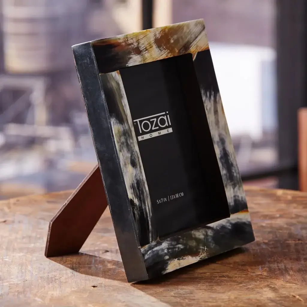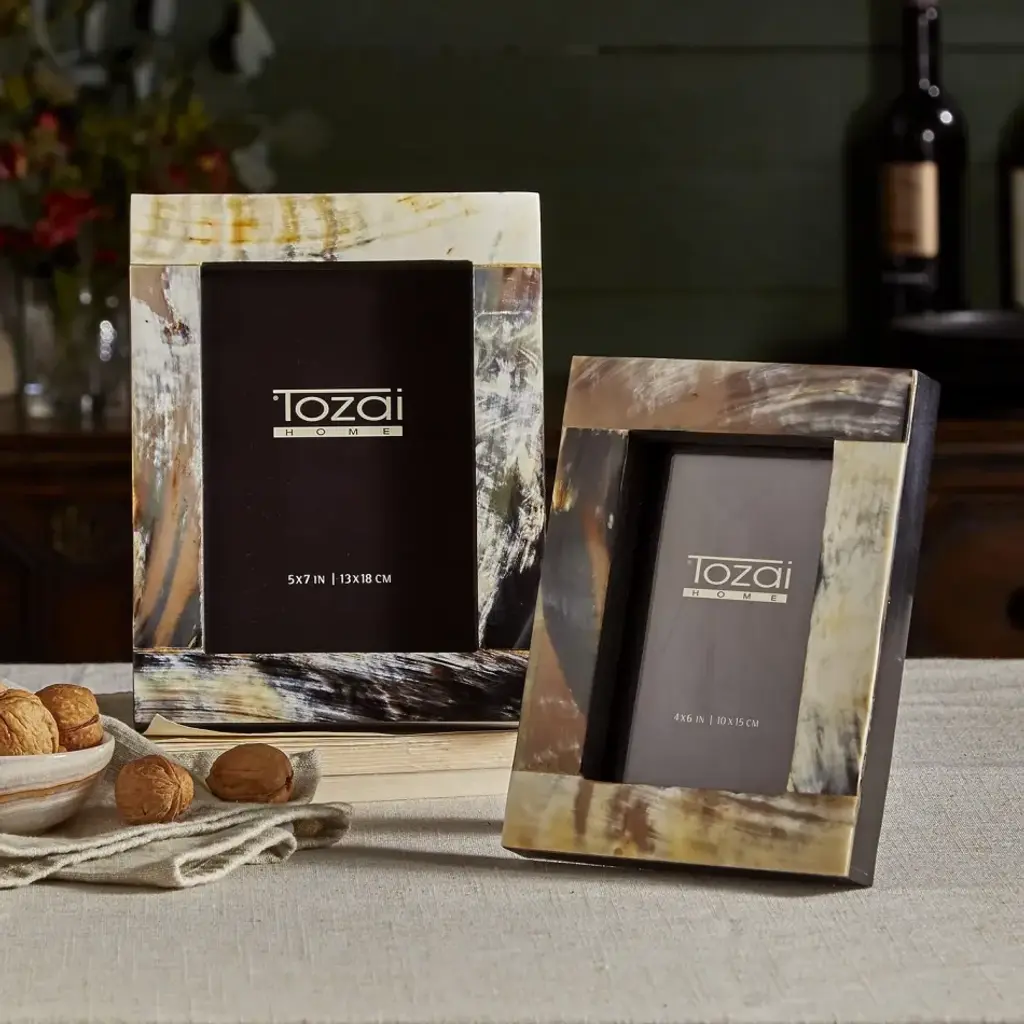 Bayard Natural Horn Set Of 2 Photo Frames (4" X 6", 5" X 7") Horn/glass