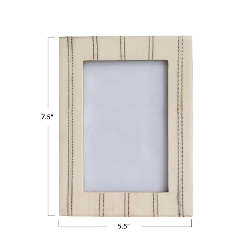 Add a touch of elegance to your favorite memories with this single picture frame. Crafted from polyresin, it showcases a rectangular shape with intricate detailing for a touch of sophistication. The glass photo protector ensures your precious moments stay safe and vibrant. Designed for vertical orientation, this frame includes mounting hardware for easy hanging. Snap in your cherished photo and enjoy a timeless display that complements any decor. Just remember, it's not reversible or foldable – but it's still a lovely addition to your home.