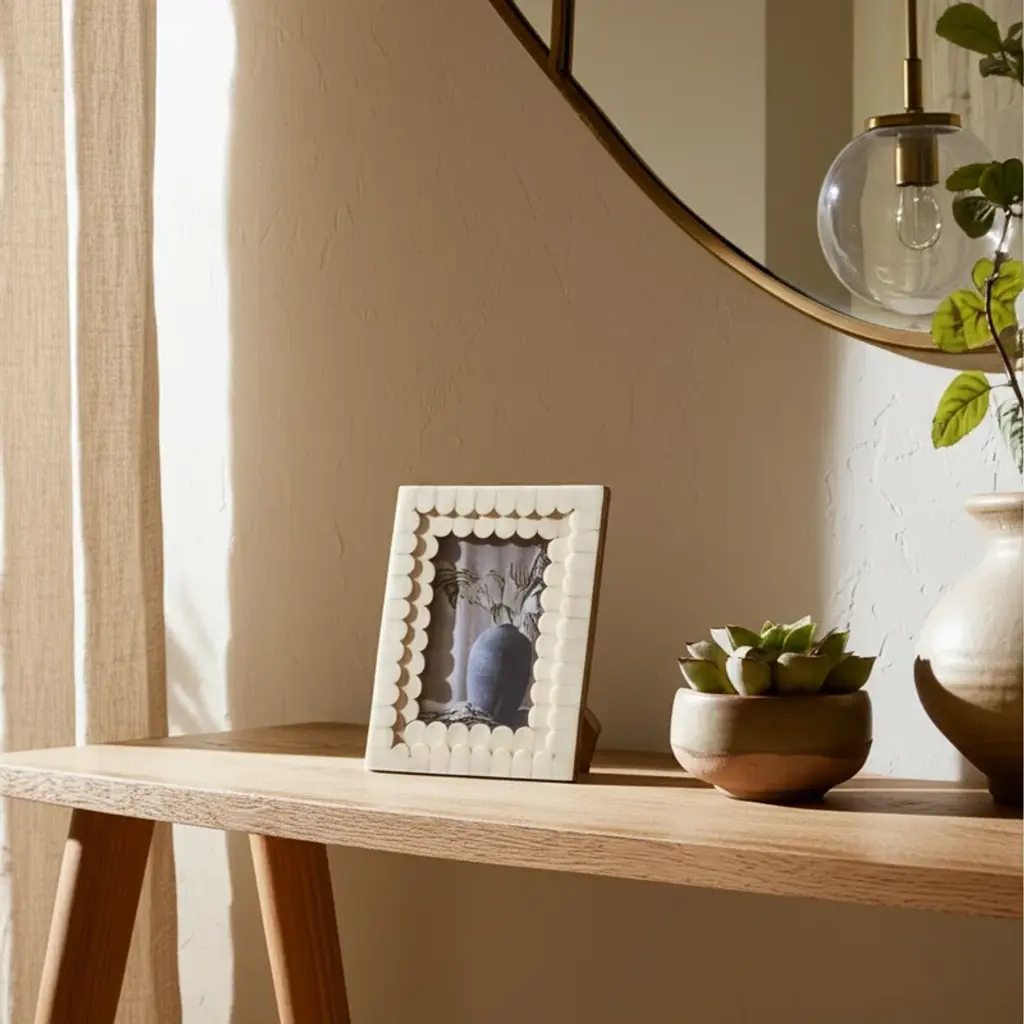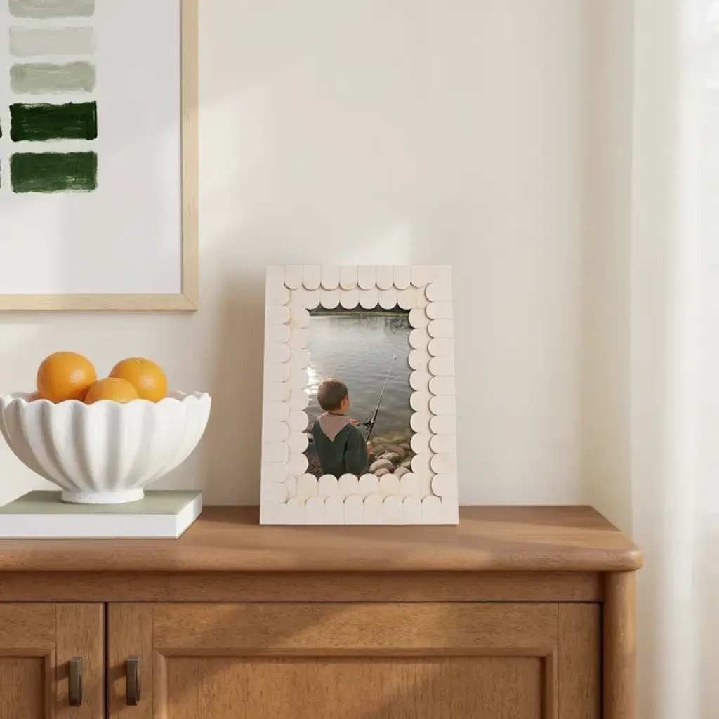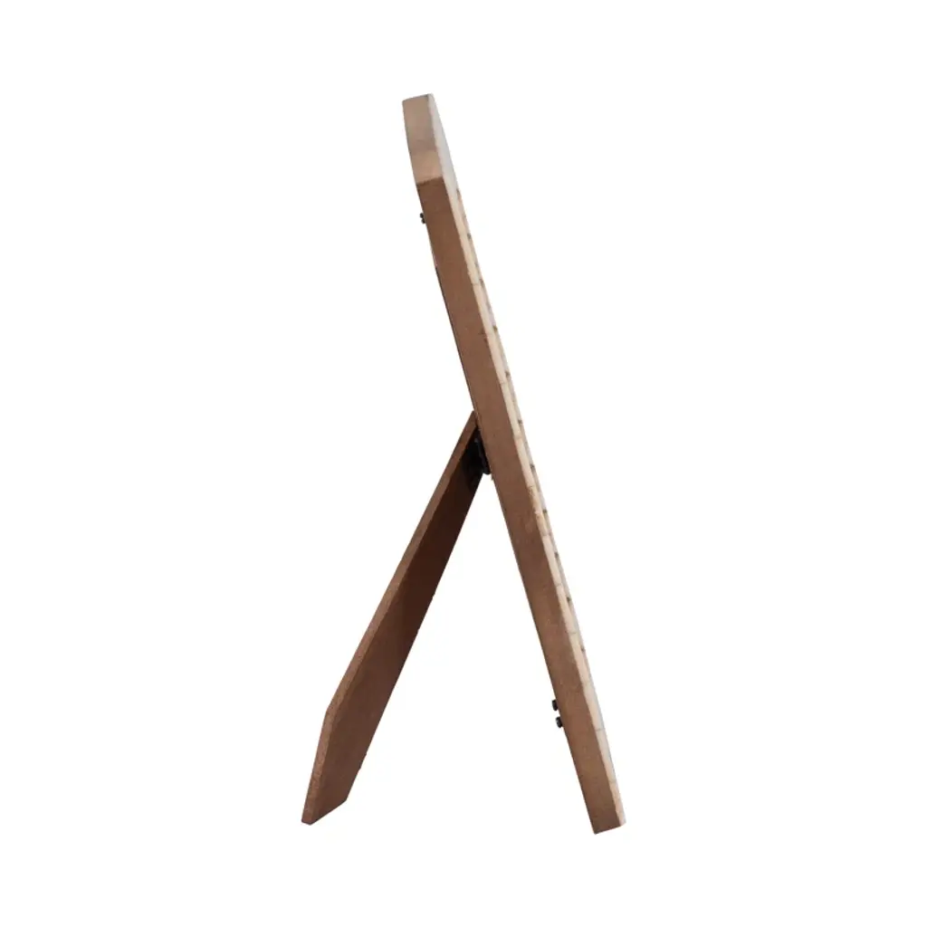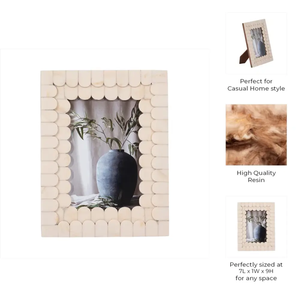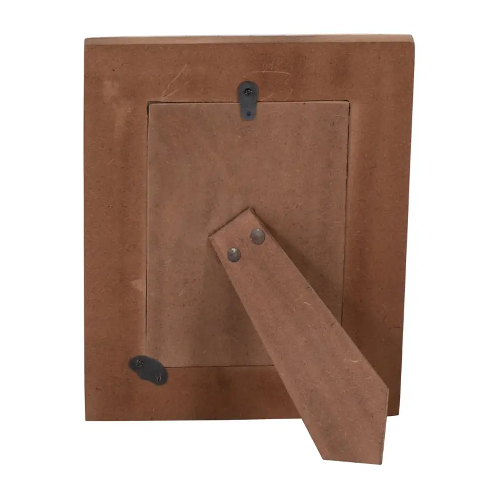 Preserve your cherished memories in this versatile single picture frame. Crafted from resin with a wood backing, it's designed to display your favorite horizontal or vertical photos with ease. The glass photo protector keeps your images looking crisp and clear, while the included kickstand lets you showcase your frame on any tabletop. To keep your frame looking its best, simply wipe it clean with a dry cloth. It's a lovely addition to any room, bringing a touch of warmth and personality to your space.
