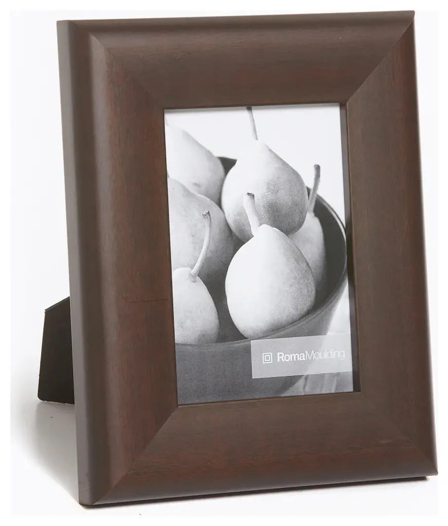Fits 5" x 5" pictures. The frame is 2" wide. They are made from 100% natural wood, with crystal clear shatter-resistant glass, and an easel backing. These frames can be displayed as landscape or portrait. The Ramino collection beautifully highlights the trends that have dominated the world of interior design for the past decade by fusing contemporary profiles With traditional finishes. The end result is a look that is fresh, current and distinctly Roma.