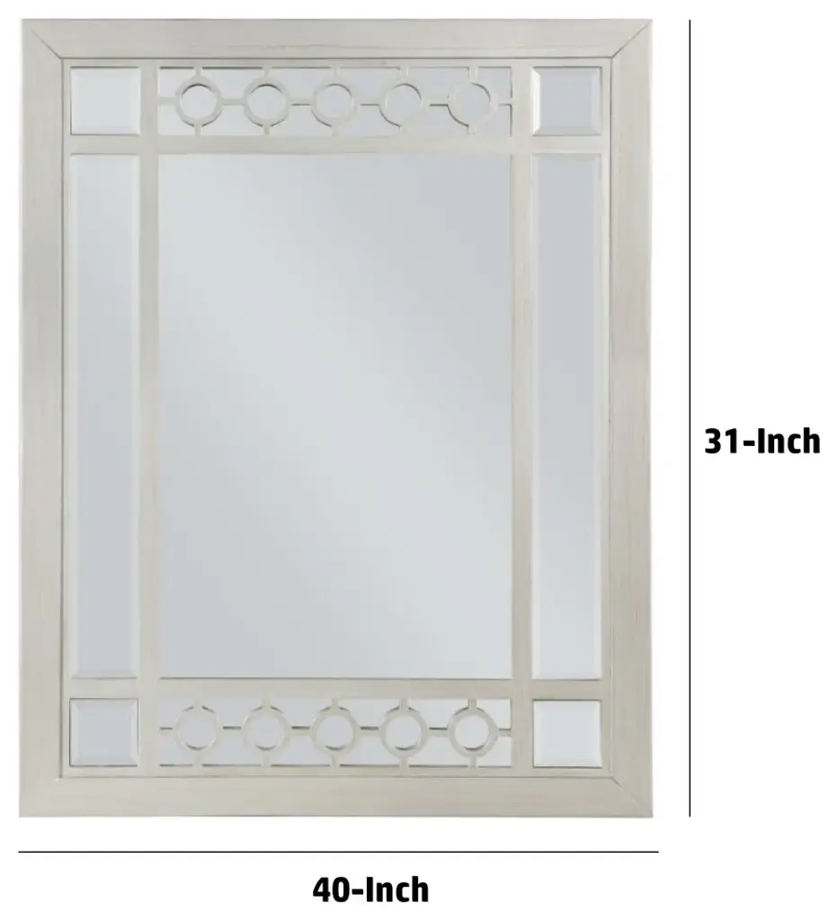 Benzara Bm275685 40" Accent Mirror, Beveled Wood Frame Portrait, Silver