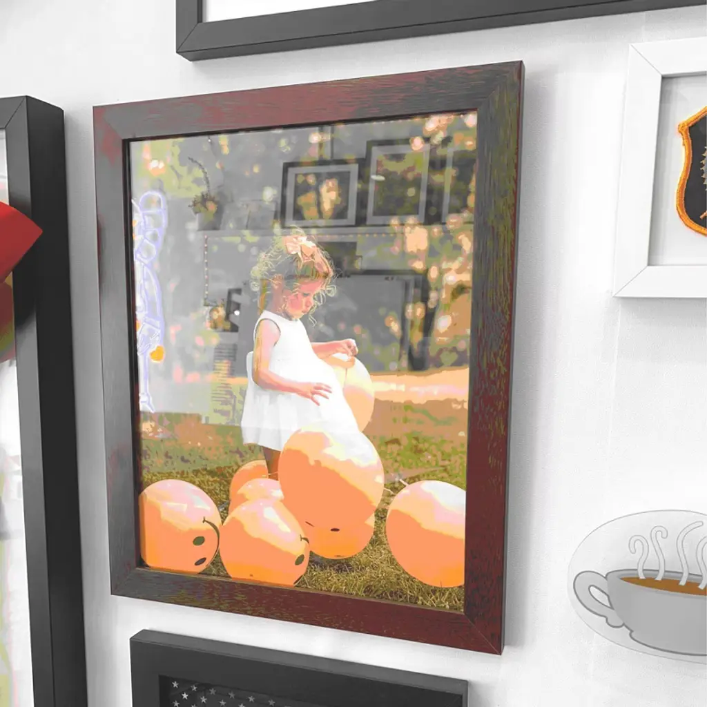 30x27 picture frame brown wood for your gallery wall to displaying personal photograph or favorite poster print to give a clear view of your picture and preserves the life of your photo. This 30x27 frame will help you put all your photos, art prints, poster and artwork on wall display.Product DetailsMoulding size: 1.25 Inch Wide | 1/2 Inch DepthFrame Material: Wood (Pine)Orientation: Horizontal & VerticalGlazing | Glass: Acrylic Plexi GlassMount Type: Wall Hanging Mounting Hardware IncludedModern Memory Design is your custom picture frame shop online based in 213Â Boulevard Hasbrouck Heights, New Jersey. Made in USAÂ