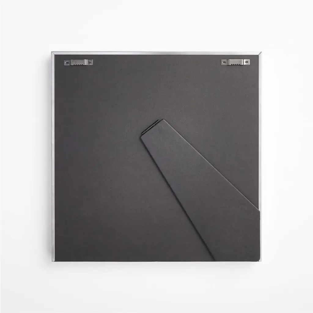 Our brushed silver square frame adds drama and shine to photo displays with its shadow-box styling and oversized off-white mat. A Crate & Barrel exclusive, our aluminum 11"x11" frame with a silver finish can be displayed on a mantel, bookshelf or table.