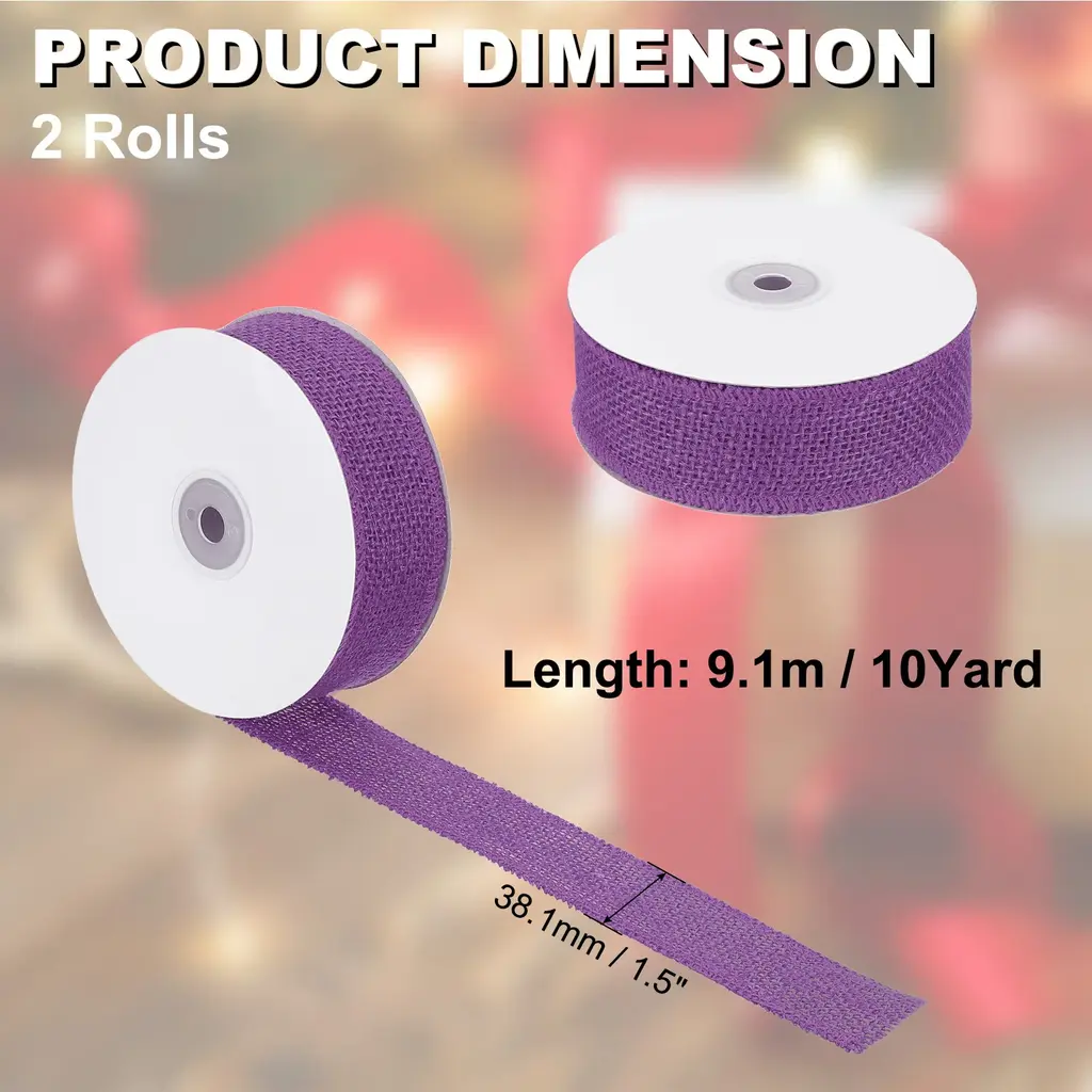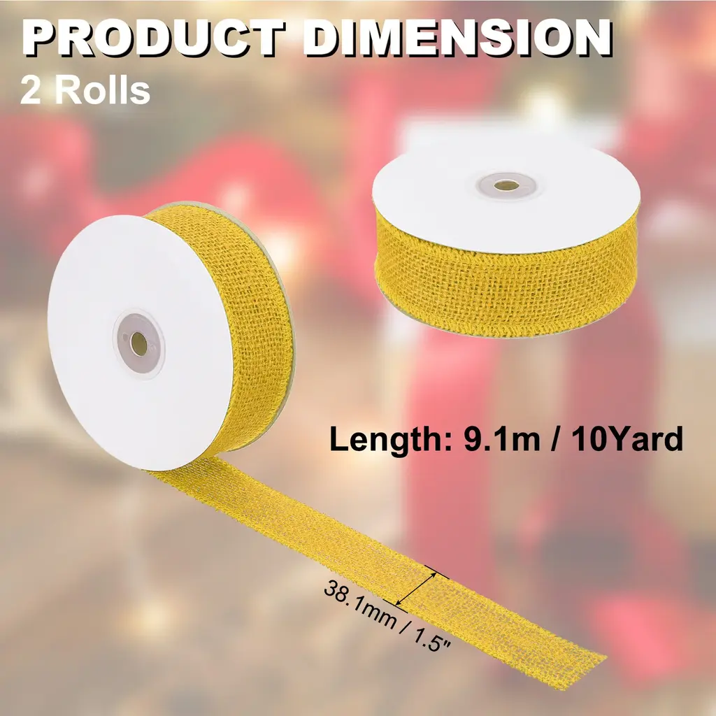The burlap ribbon is perfect for a variety of occasions, including Christmas celebrations, weddings, parties, and home decoration. It can be used to decorate christmas trees, tables, chairs, vases, bouquets, photo frames, and more. The natural look of the ribbon adds a cozy and warm feel to any space.SpecificationColor: BrownMaterial: JuteSize:1.5 inch x 10 Yard / 38.1mmx9.1m (W*L)Packing List: 2 x Burlap Fabric RibbonAdvantageThe burlap ribbon is flexible yet stiff enough to maintain its shape, making it an excellent choice for burlap trim and wreath making supplies. The natural jute fabric adds a rustic touch to any project, and the ribbon is durable and long-lasting.InstructionTo use the Burlap Ribbon, simply unroll the desired length and cut with scissors. The ribbon can be tied, twisted, or wrapped around objects to add a decorative touch. It can also be used to create bows or other embellishments.Note: When using the Burlap Ribbon, be careful not to get it wet, as it may cause the fabric to shrink. Additionally, avoid exposing the ribbon to direct sunlight for extended periods, as this may cause the color to fade. Finally, keep the ribbon away from open heat sources.
