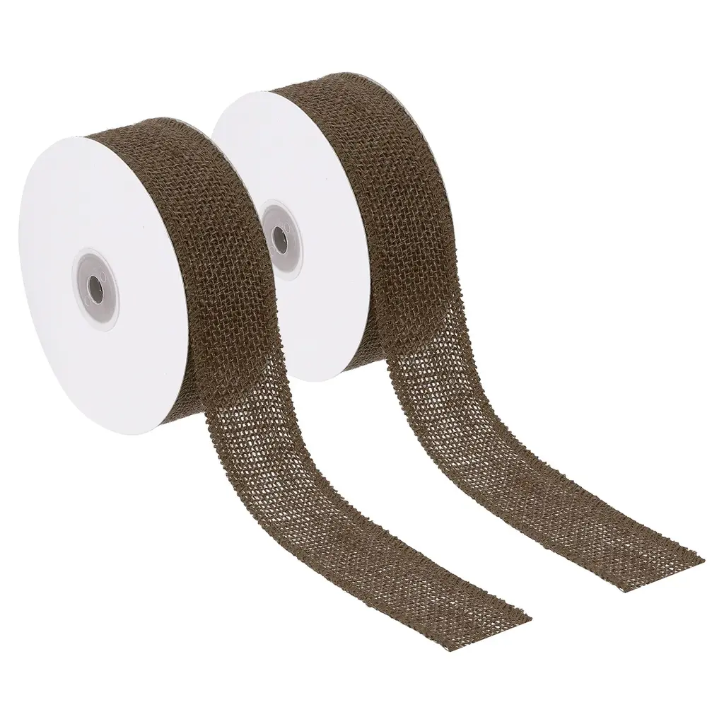 Burlap Fabric Ribbon 2Pcs Jute Crafts Roll Wrapping - Brown - 1 Inch X 10 Yards