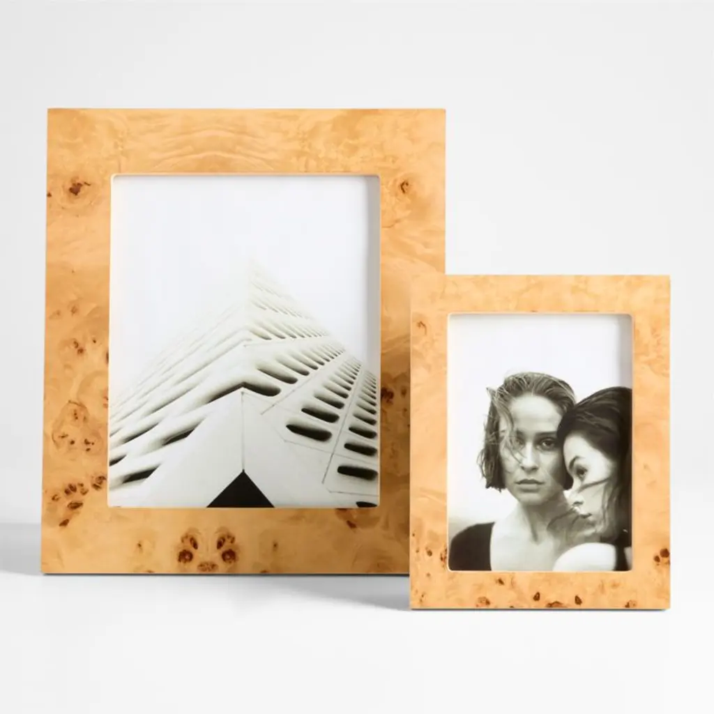 Surround your favorite portrait or vacation scene with the expressive beauty of burl wood. Each frame showcases the unique whorls and markings characteristic of this prized wood, bringing organic richness to your picture display. Hang on the wall or use the easel back for presenting on a tabletop or mantel.