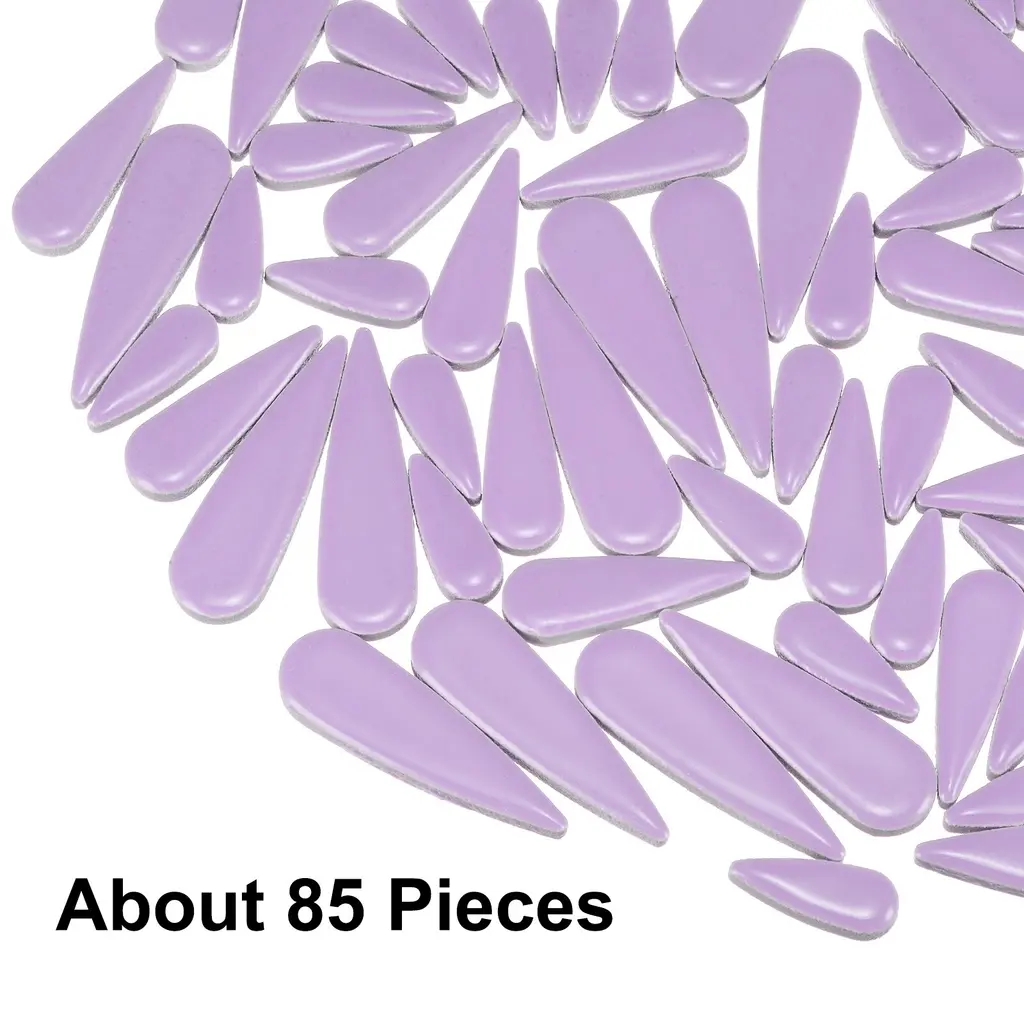 Description:Material: These mosaic tiles are crafted from durable and stain-resistant ceramic material. The smooth surface adds an elegant touch, while the wear-resistant properties ensure long-lasting beauty without fading over time.Feature: Designed in an eye-catching teardrop shape, these ceramic mosaics enhance visual appeal and decorative charm. Available in a variety of colors, they offer a mix of 3 different sizes, creating a mosaic with a random assortment of large, medium, and small quantities.Easy to use: The teardrop flower leaves mosaic blocks are easy to use. They can be easily arranged according to personal preference. Use special glue or adhesive to securely fix them onto walls, flower pots, cups, or any desired surface.Multiple Use: These ceramic mosaic tiles are perfect for various occasions, including Christmas, birthdays, housewarming celebrations, and other festive events. In daily life, they can serve as exquisite home decorations for flower pots and garden stepping stones. Additionally, the ceramic mosaics can be used creatively for crafting photo frames, cups, and more. Specification:Color: PurpleMaterial: CeramicsThick: About 4mm/0.16inchLarge Grain Size: About 4.1 x 1.2cm /1.61 x 0.47inch( L*W)Medium Grain Size: About 3.1 x 1cm /1.22 x 0.8inch( L*W)Small Grain Size: About 2.1 x 0.8cm /0.83 x 0.31inch ( L*W)Package Content: 1 x Ceramic Mosaic Tile(About 85 Pieces)