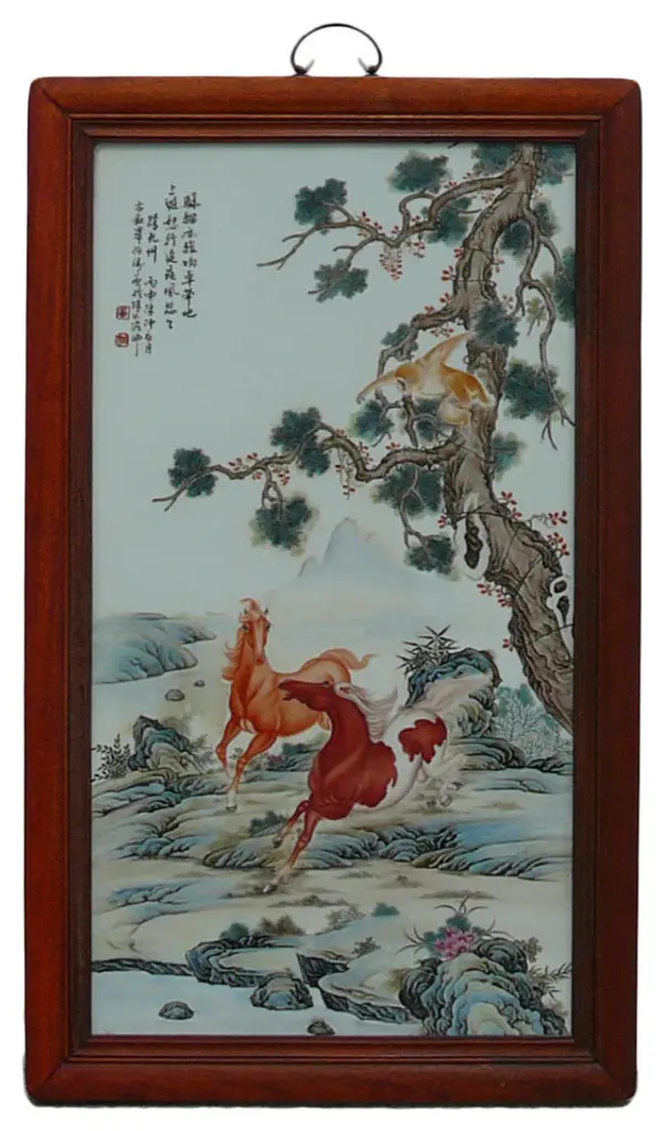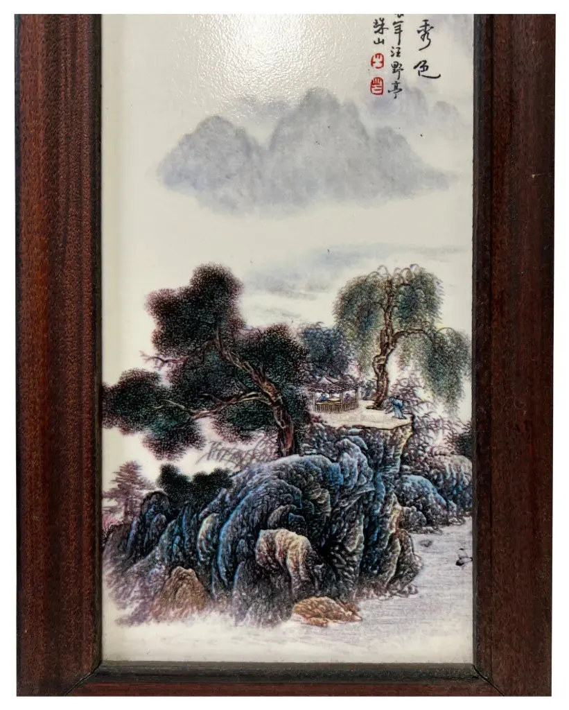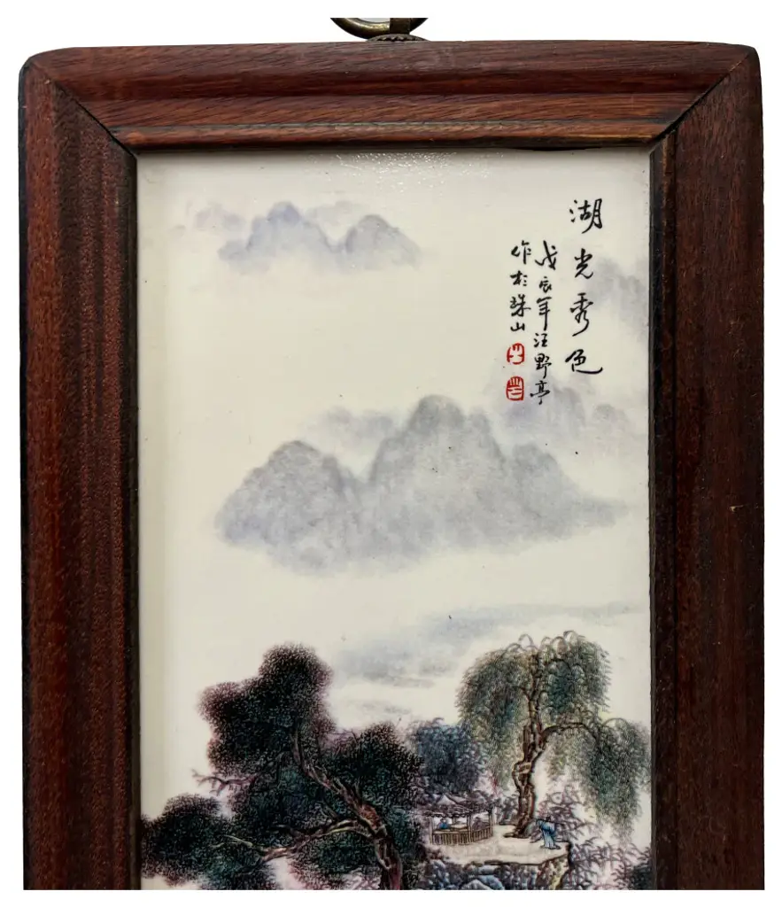 This is a vintage traditional Chinese oriental wall decoration piece made of a wood frame and porcelain center plaque with a traditional ink brush color oriental mountain tree scenery theme.Dimensions: w6.25" x h11.25" thickness 0.75"Origin: ChinaMaterial: Wood, PorcelainCondition: handmade, wear out distressed marksFor all USA domestic continental customers (from 48 states), there is a flat shipping fee of $30, which includes insurance and handling charges. (Additional shipping charges apply to buyers from Hawaii, Alaska, US Islands, Florida Keywest, and Canada). If you are in the San Francisco Bay Area, we warmly encourage you to take advantage of our convenient in-store pick-up option at no extra cost. Please keep all original packing material and box if damage happens.