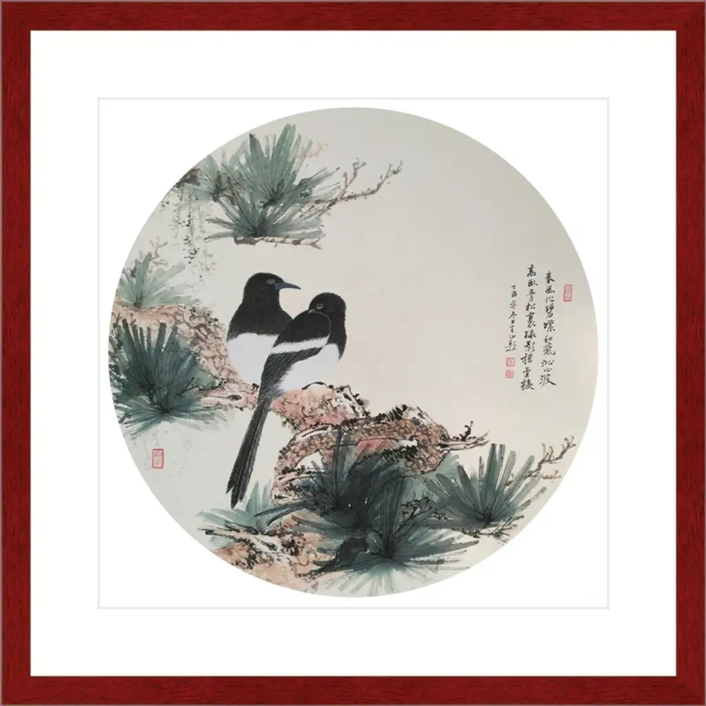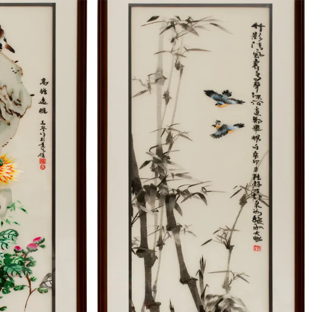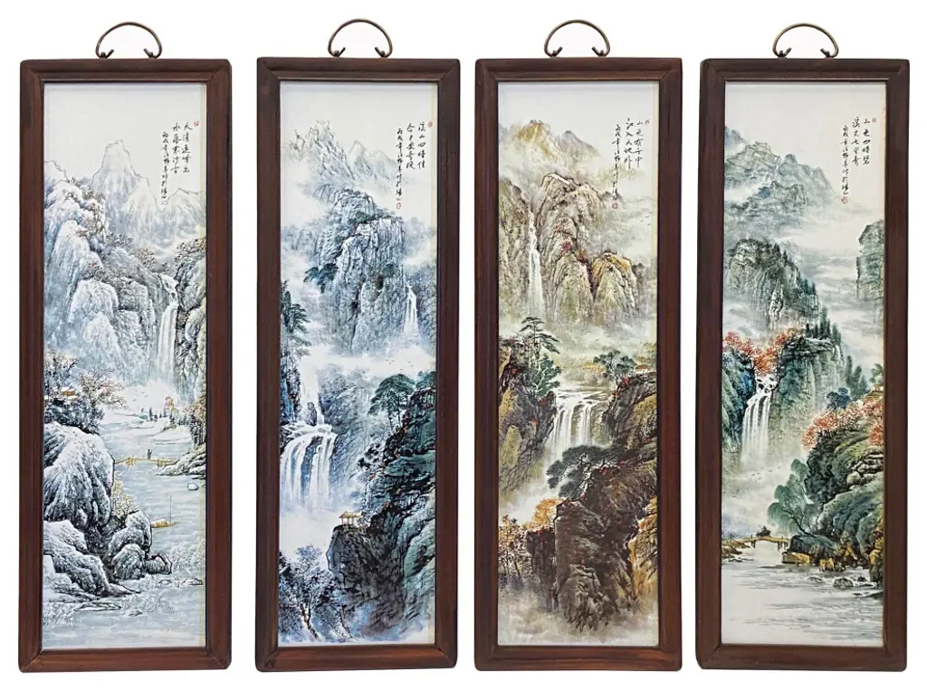 Chinese Wood Frame Porcelain Mountain Tree Scenery Wall Plaque Panel Hws3359