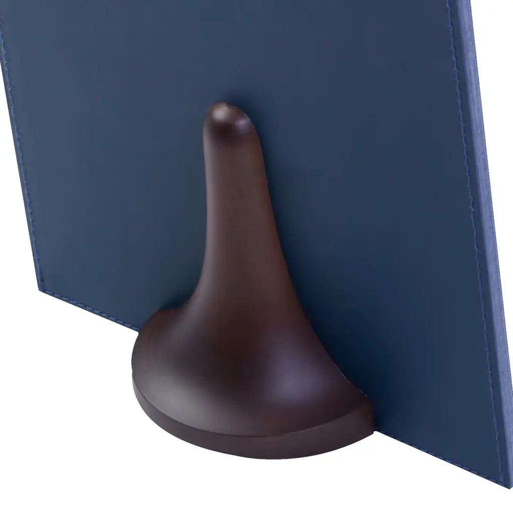 This sophisticated picture frame is a splendid object to showcase in any room in the house. Modern elegance and traditional craftsmanship harmoniously coexist in this minimalist design that boasts a rectangular silhouette in walnut-finished wood framed in water-resistant saddle leather finished in navy blue. An anti-reflective Perspex sheet protects the precious souvenirs displayed within the frame.
