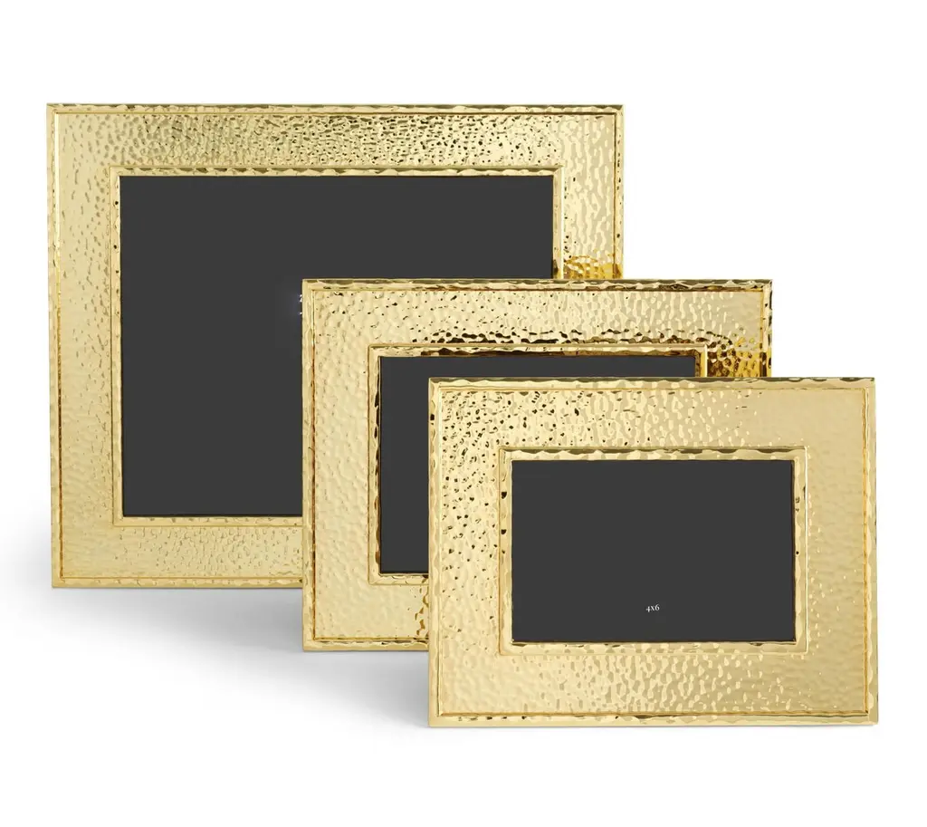 Contemporary hammered metal and gold medium photo frame.Display your favourite memories in style with this contemporary hammered metal and gold photo frame. Perfect for both modern and traditional interiors. This photo frame can be oriented horizontally or vertically.Photo frame: H: 24.77cm, W: 19.69cm, D: 1,5cmPhoto: H: 17.78cm, W: 12.7cm