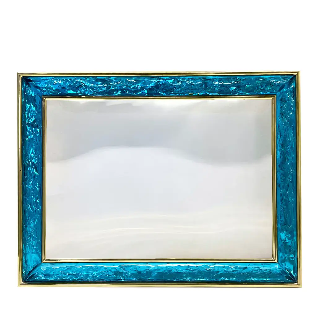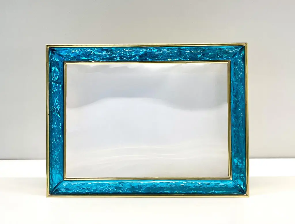 Contemporary Picture Frame Handmade Blue Crystal, Brass And Gold By Ghirò Studio