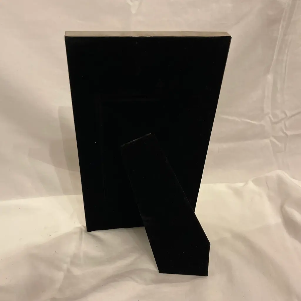 Contemporary Ralph Lauren Picture frame for a 4x6 photo, Silver plated or chrome accents with a black leather crocodile design.