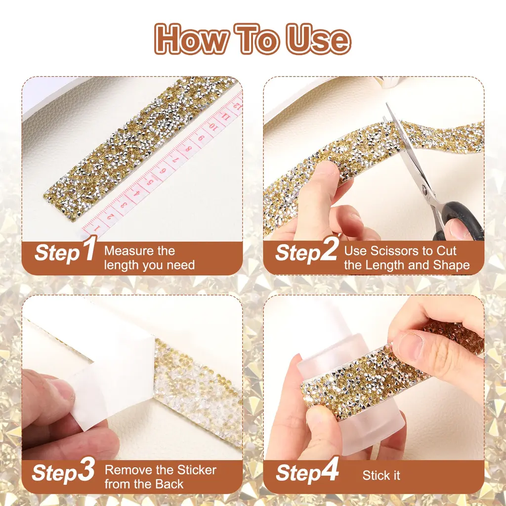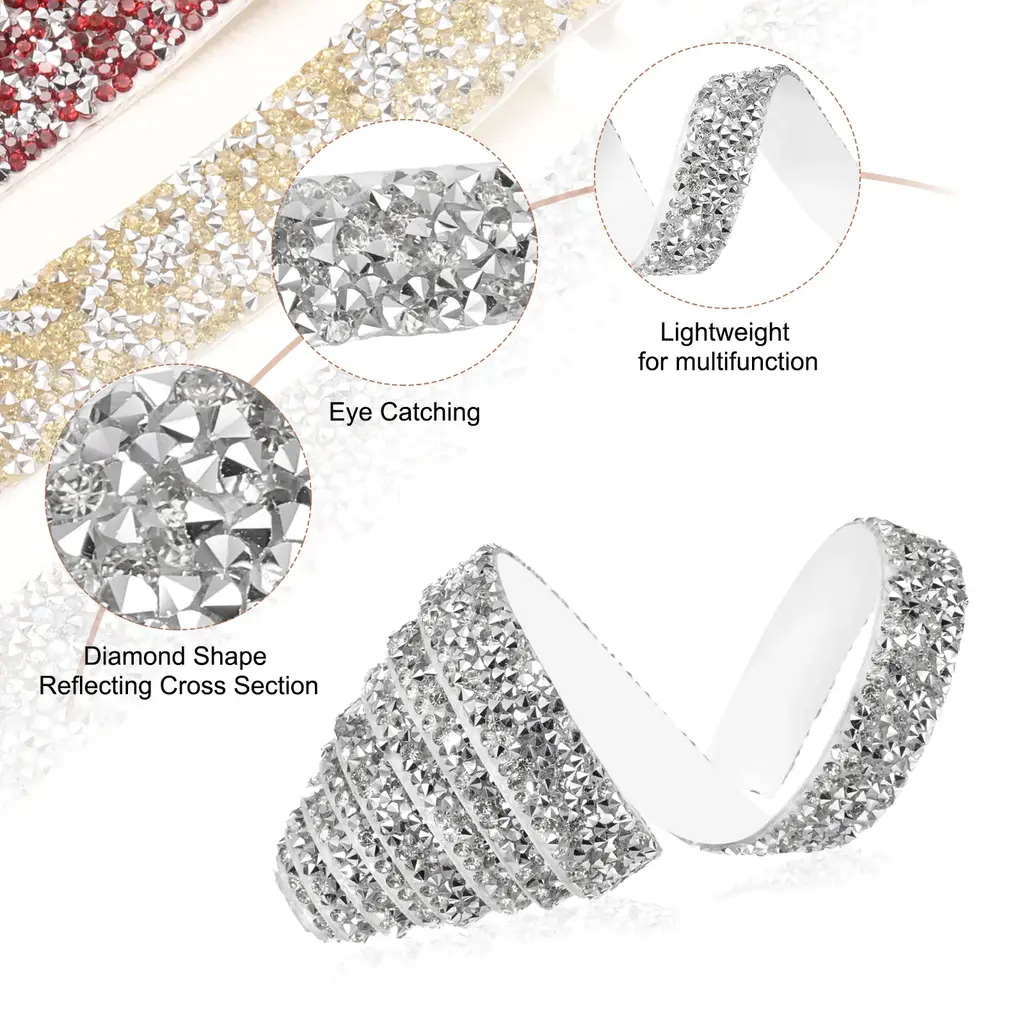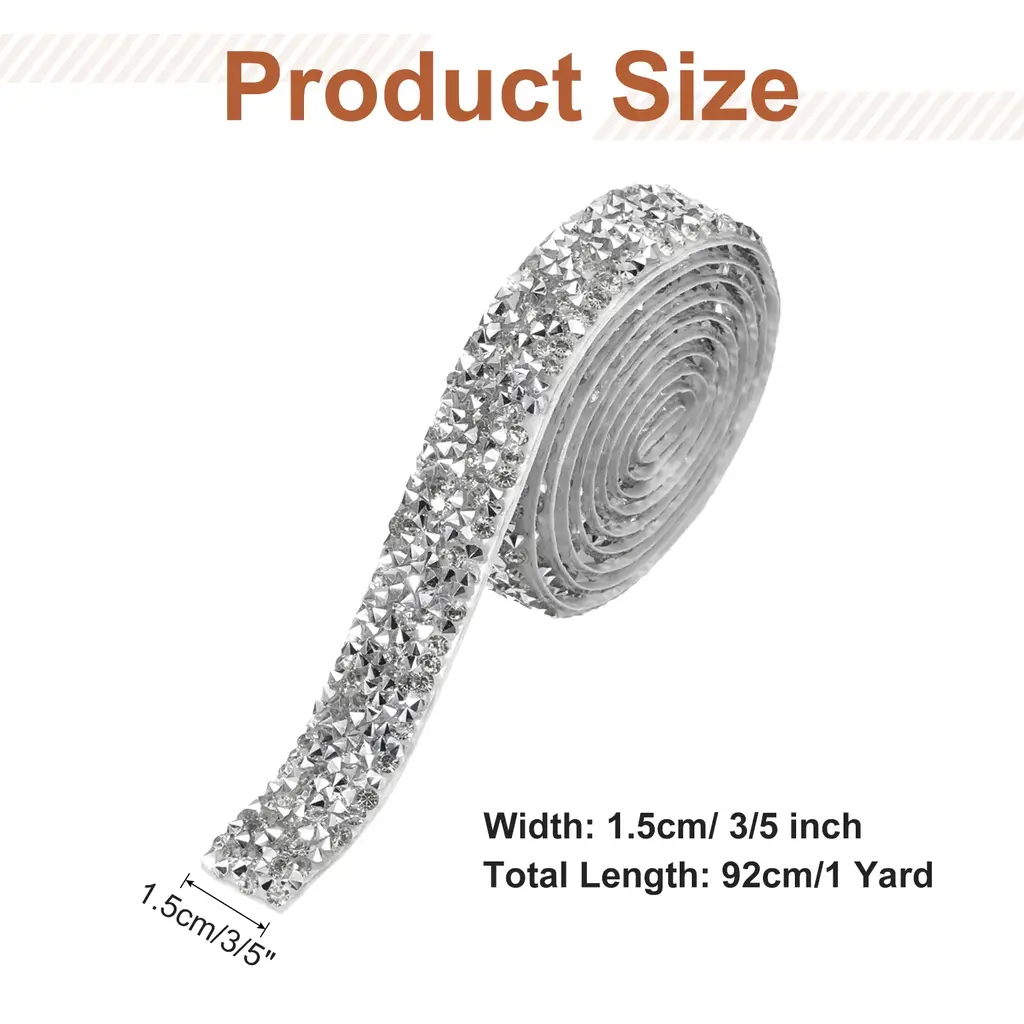 Advantage:[Material] - Made of rhinestone and self-adhesive paper, it has a high viscosity, is not easy to fall off, and can be stuck on any smooth surface.[Design] - The crystal rhinestone strips add a shiny appearance to decor your home, wedding, birthday party, and car interior accessories.[Easy To Use] - Use scissors to cut out the desired length and width, tear the sticker from the back, and stick on the item you want to decorate.[Wide Application] - Suitable for clothing accessories, diamond accessories, mobile phones, photo frames, dresses, shoes, laptops, handbags, cups, etc.Specification:Material: Rhinestone/PaperColor: SilverLength: 92cm/1 YardWidth: 1.5cm/3/5 inchPackage Included: 1pcs x Crystal Rhinestone Ribbon