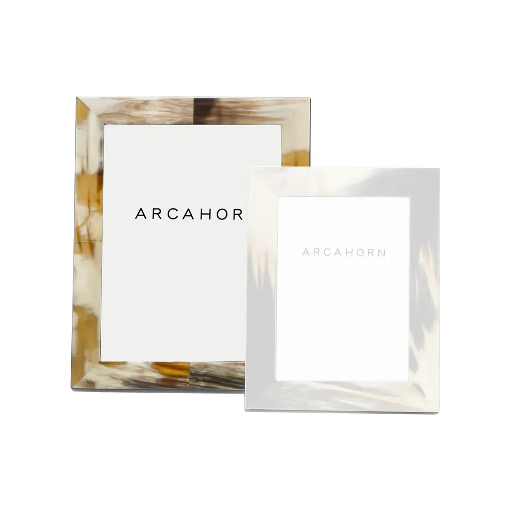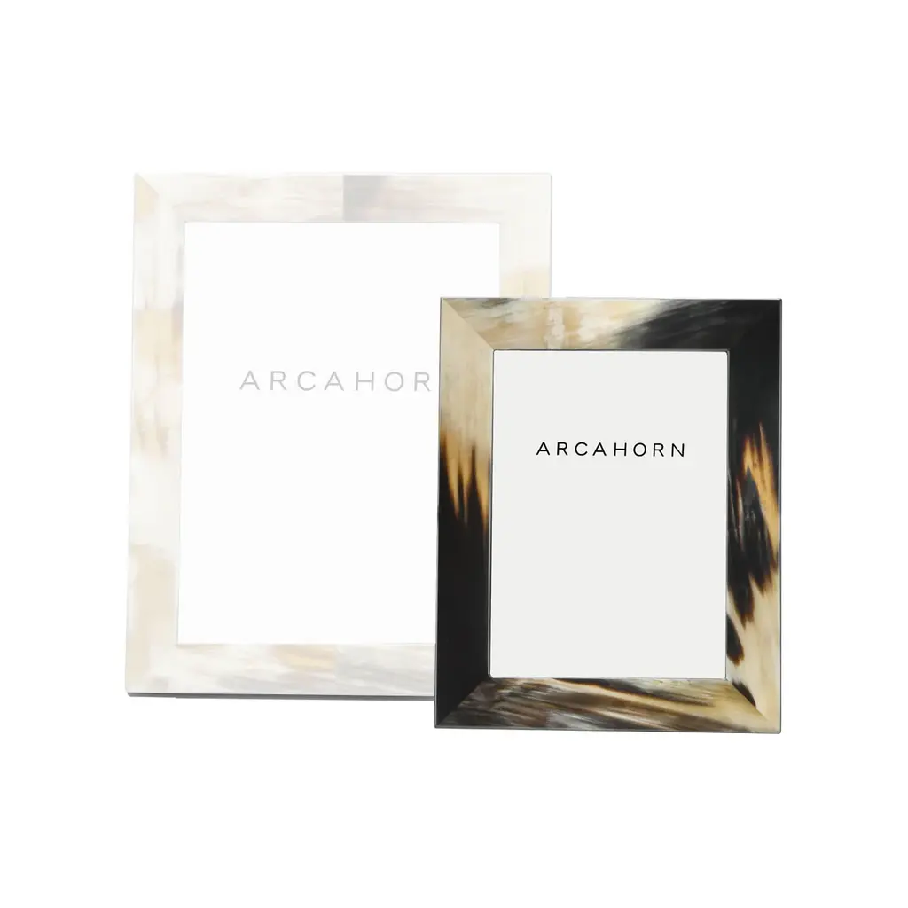 Display your cherished memories in the most distinctive way with the Dafne Picture Frame from Arcahorn. Crafted from natural dark horn with white, cream, and brown nuances, this frame exudes timeless elegance, while the glossy black lacquered wood edging adds a sophisticated touch. A versatile and considered addition to any room. Highlights