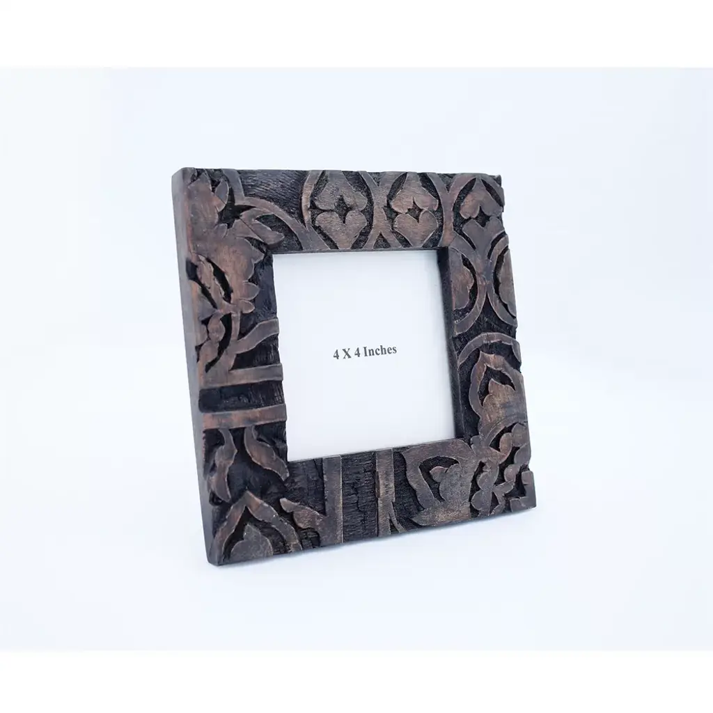 Dark Wood 4 X 4 Inch Carved Wood Picture Frame - Foreside Home & Garden