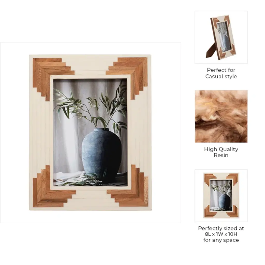 Decorative Photo Frame Contemporary Rustic Resin Brown And White Cascading Design Picture Frame