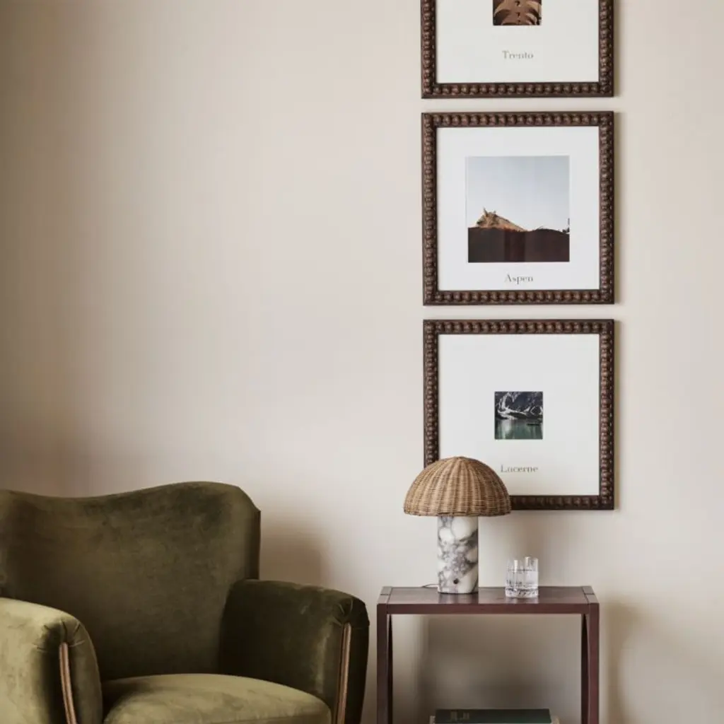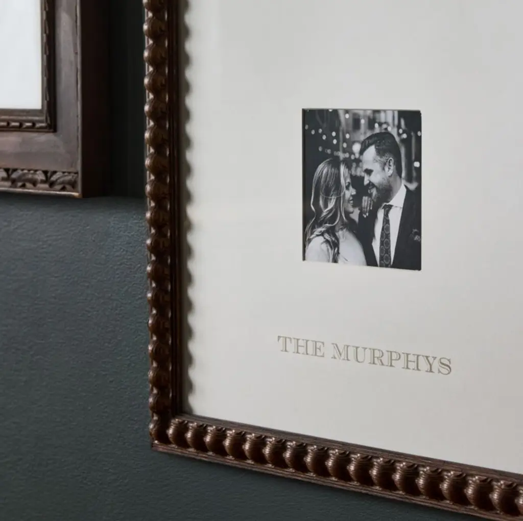 Inspired by midcentury design, Elmhurst surrounds a favorite photo with attention-getting beading. The acacia frame is carved by hand and given a walnut finish to highlight the wood's natural beauty. Two white mats are included to accommodate 5x5 and 11x11 pictures.