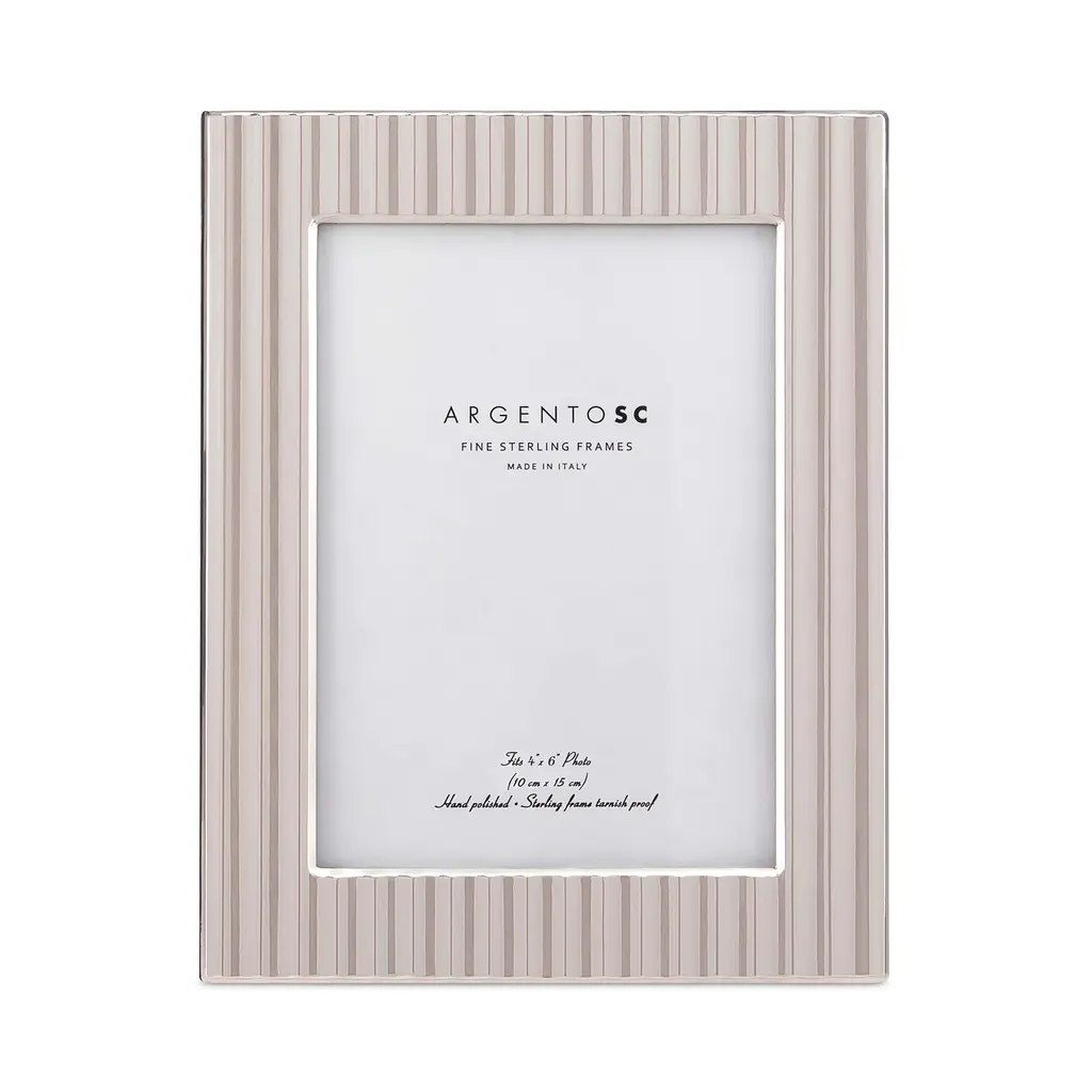 This fine frame in sterling silver 925 will be a captivating and luxe home for dear memories printed onto 13x18cm photographs. The back supporting structure features fragrant leather upholstery, increasing the luxe flair of the frame (3cm wide), which strikes with its guilloche texture mantled with a seductive layer of red enamel. Different color options and a variant for 10x15-cm photos are also available, please ask the Concierge for options and pricing.