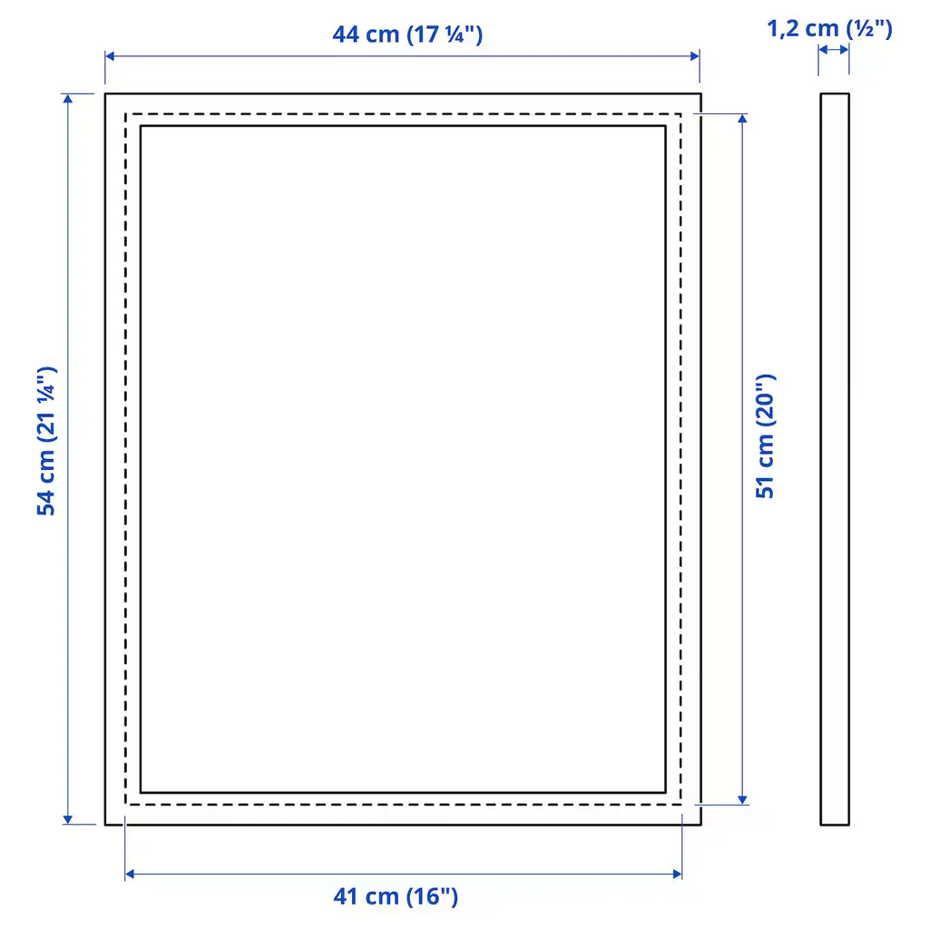 FISKBO Frame - light gray-green 16x20 ". This frame is ideal to use with ALFTA adhesive hook. With the hook you can easily hang the frame without nails or screws and decorate your walls with pictures. Can be hung horizontally or vertically to fit in the space available.