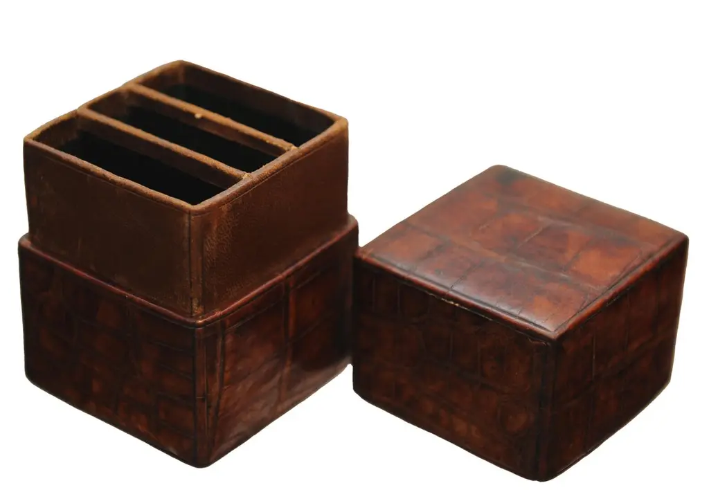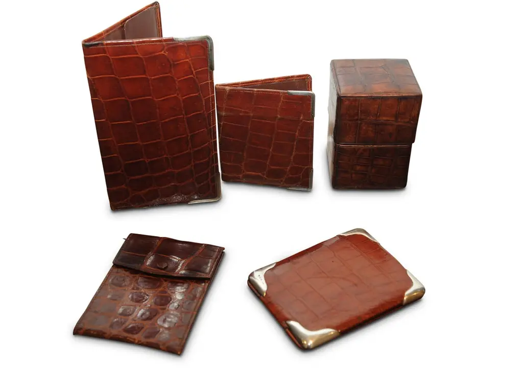 Five Piece Faux Crocodile And Silver Gentleman's Set By Barrett & Thompson 1922