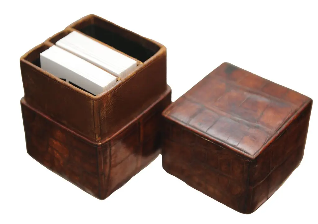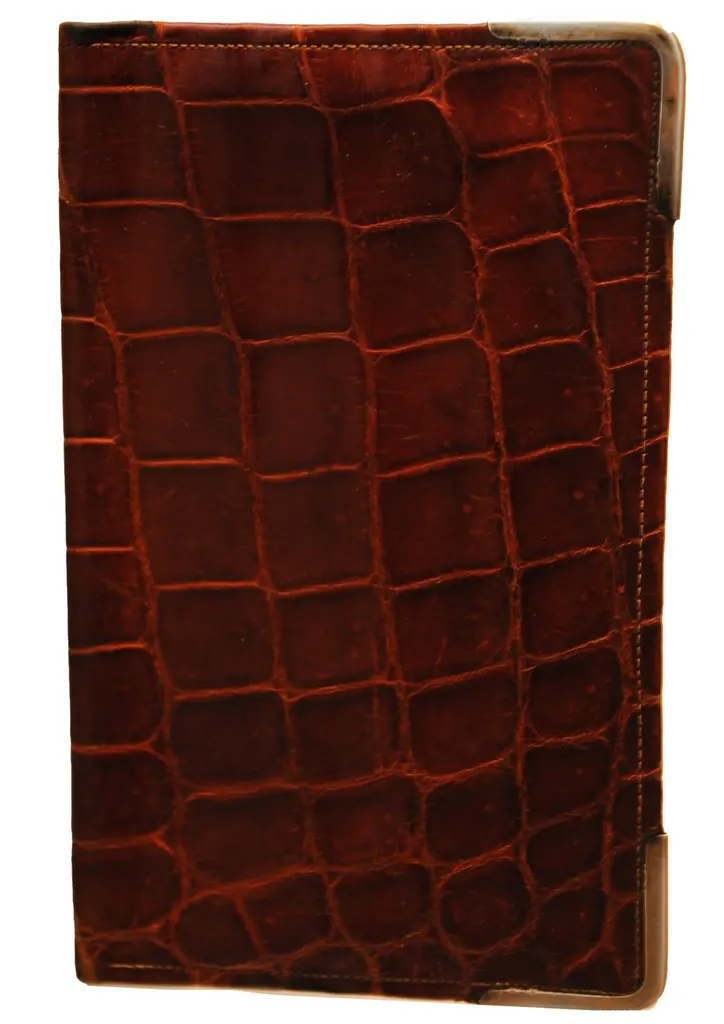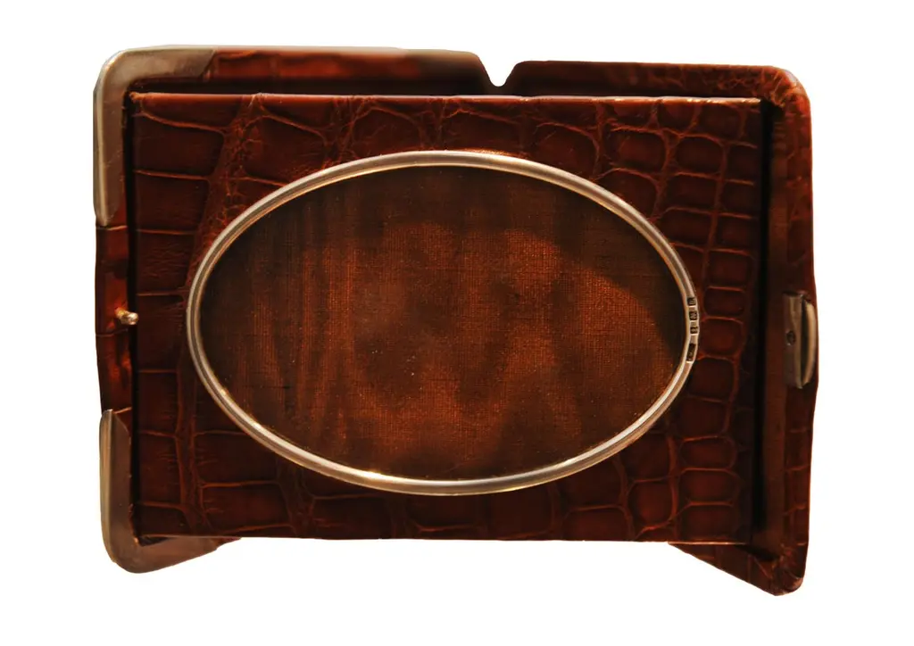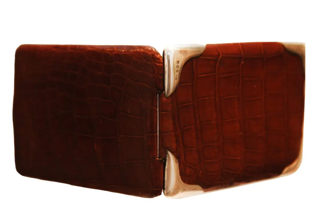 A Stylish Set of 5 Items of Sterling Silver & Faux Crocodile Brown Leather Gentleman's Accessories by English Silversmiths "Barrett & Thompson" Hallmarked in London 1922Set includesTwo Flat WalletsA Pocket Photo Frame Pouch & Business Card HolderIdeal Christmas Presents