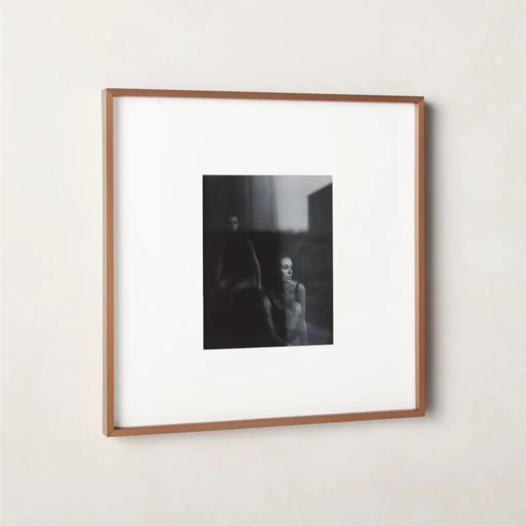 Exhibit your favorite photos and images gallery-style. White mat floats one 8x10 within a sleek picture frame of brass-finished aluminum. CB2 exclusive.
