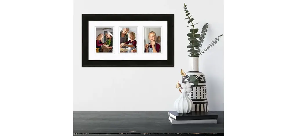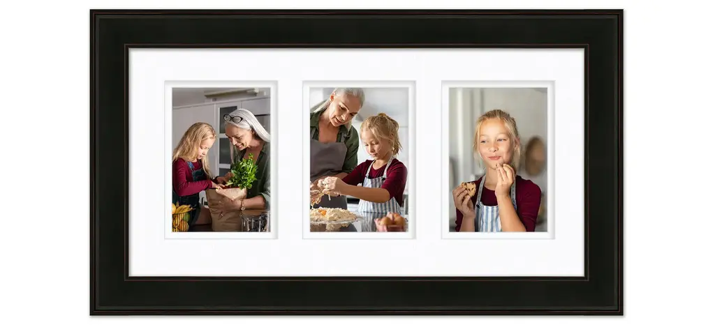 Solid wood frame with furniture grade finish; includes double bevel mat to display your cherished photos on your custom gallery wall.