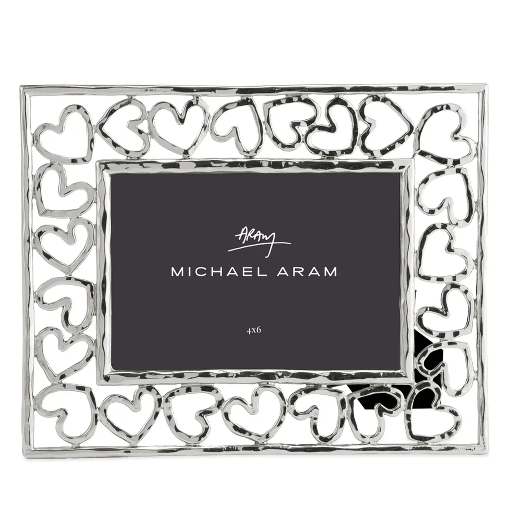 Michael Aram dancing heart photo frames in tarnish resistant silverplate. Ideal for someone you love. The Heart Collection is built around the simple but universal symbol of love, hope, friendship and caring. The shape of the heart creates instant responses in us all and carries a world of meaning that changes according to the intent of both the giver and the recipient.