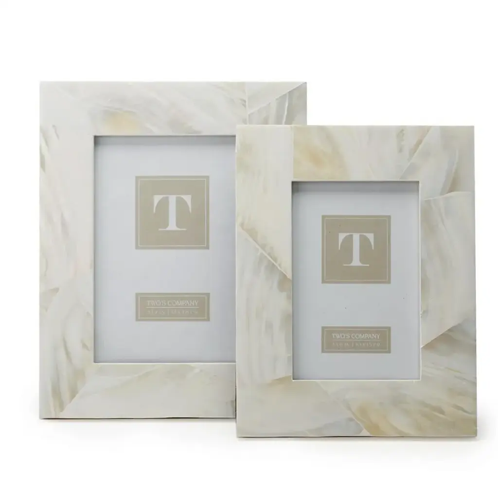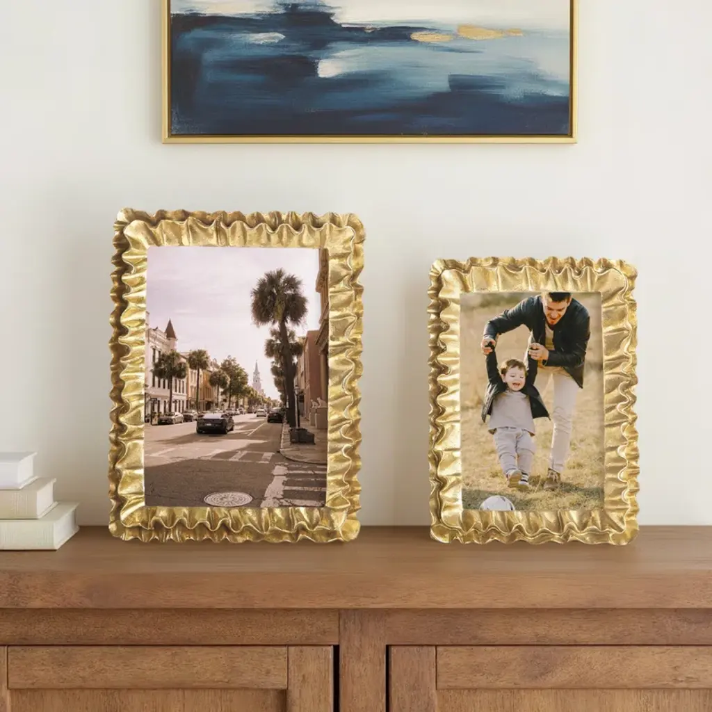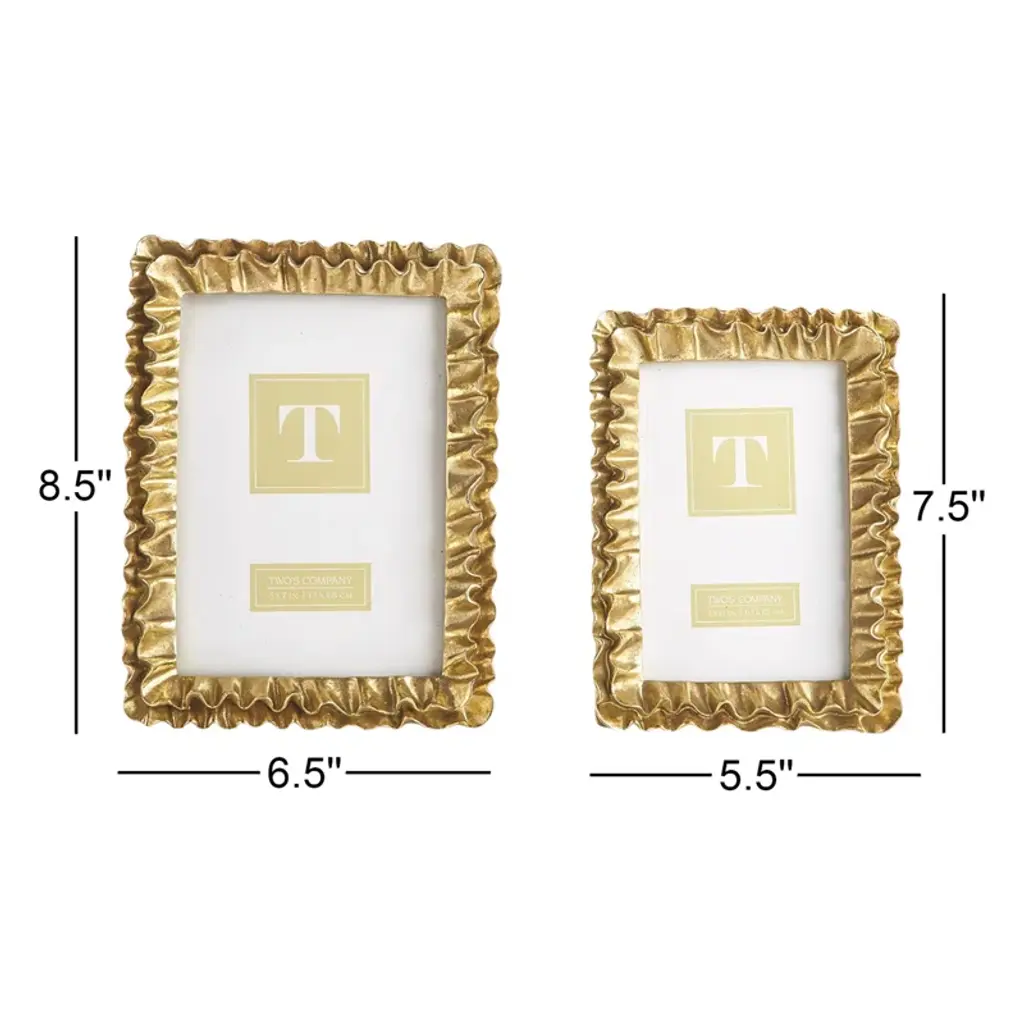 These ruffle frames set of 2 frames are beautifully made. These unique frames have intricate details, including undercuts which really make the frame stand out and are finished with a stunning patina.