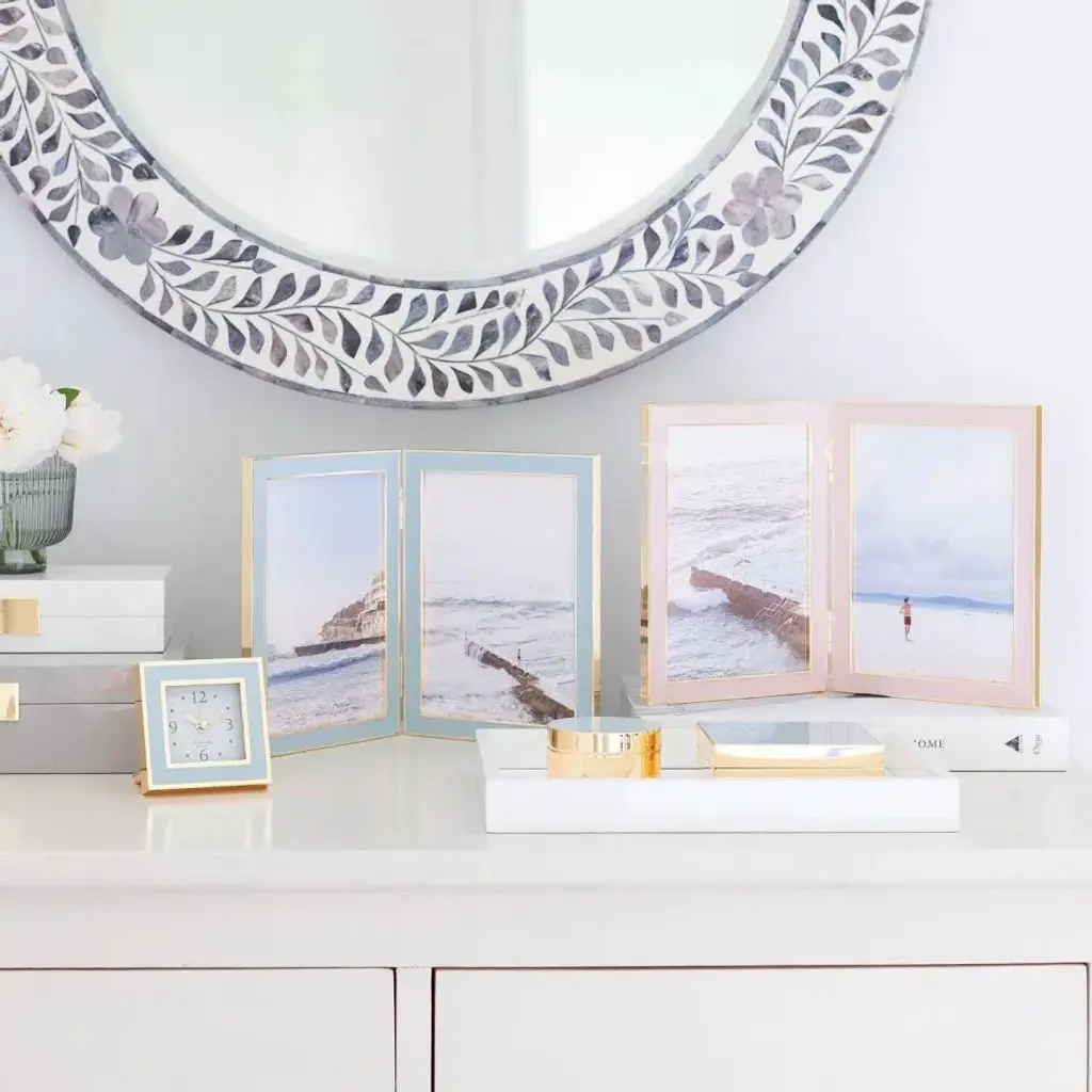 Added by popular demand we have created this elegant and exclusive 5 x 7 inch Double Pale Pink and Gold Enamel Photograph Frame, a perfect stylish gift for any occasion.