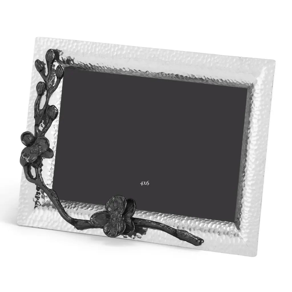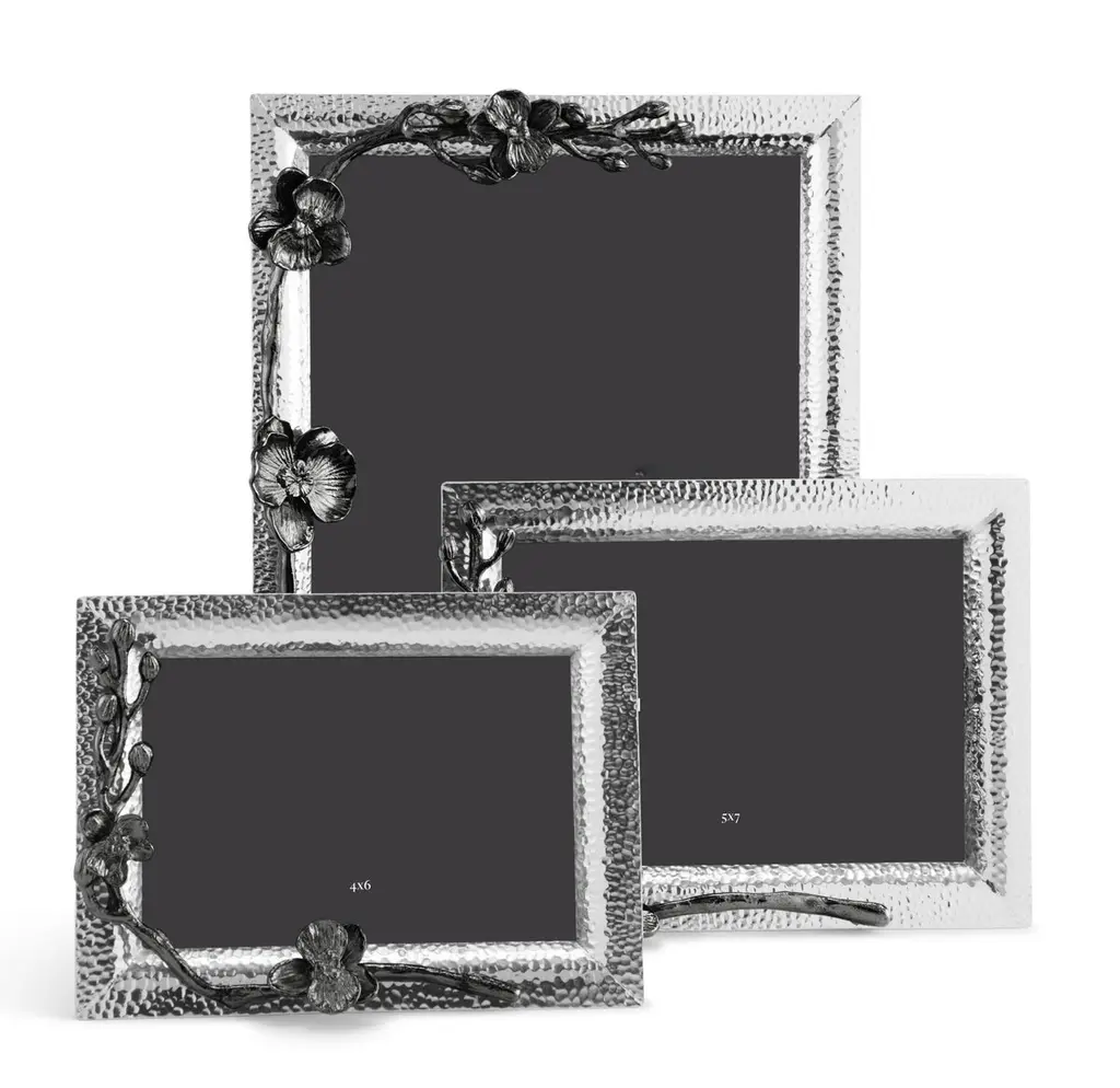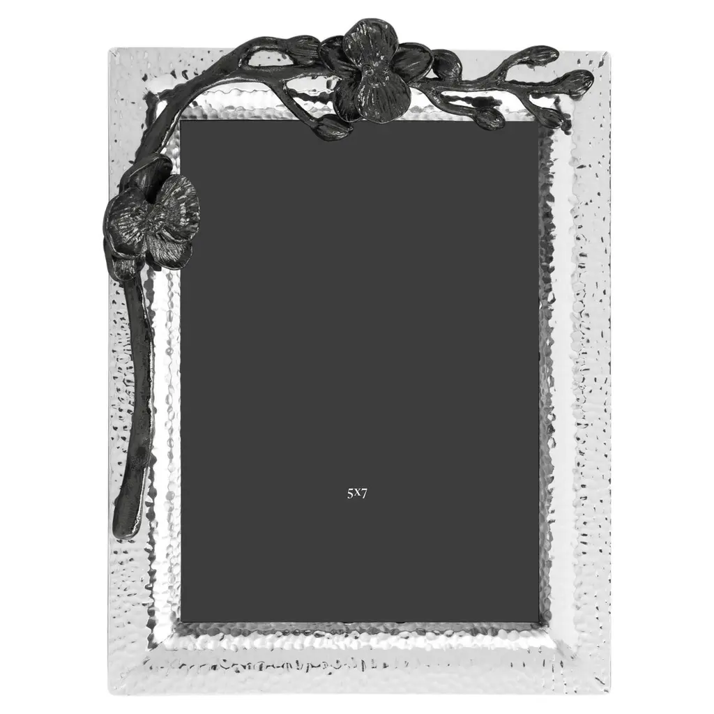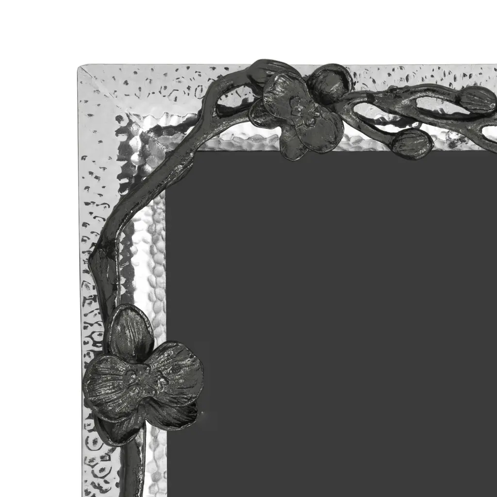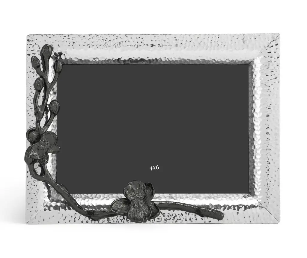 Handcrafted nickel-plated metal small model photo frame with a delicate black orchid design in black nickel-plated metal.Contemporary small model photo frame handcrafted in nickel-plated sheet metal with a delicate black orchid design in black nickel-plated sheet metal. Can be placed in both landscape and portrait orientation.Photo frame: H: 20.32 cm, W: 15.24 cm, D: 1,5cmPhoto: H: 15.24 cm, W: 10.16 cm