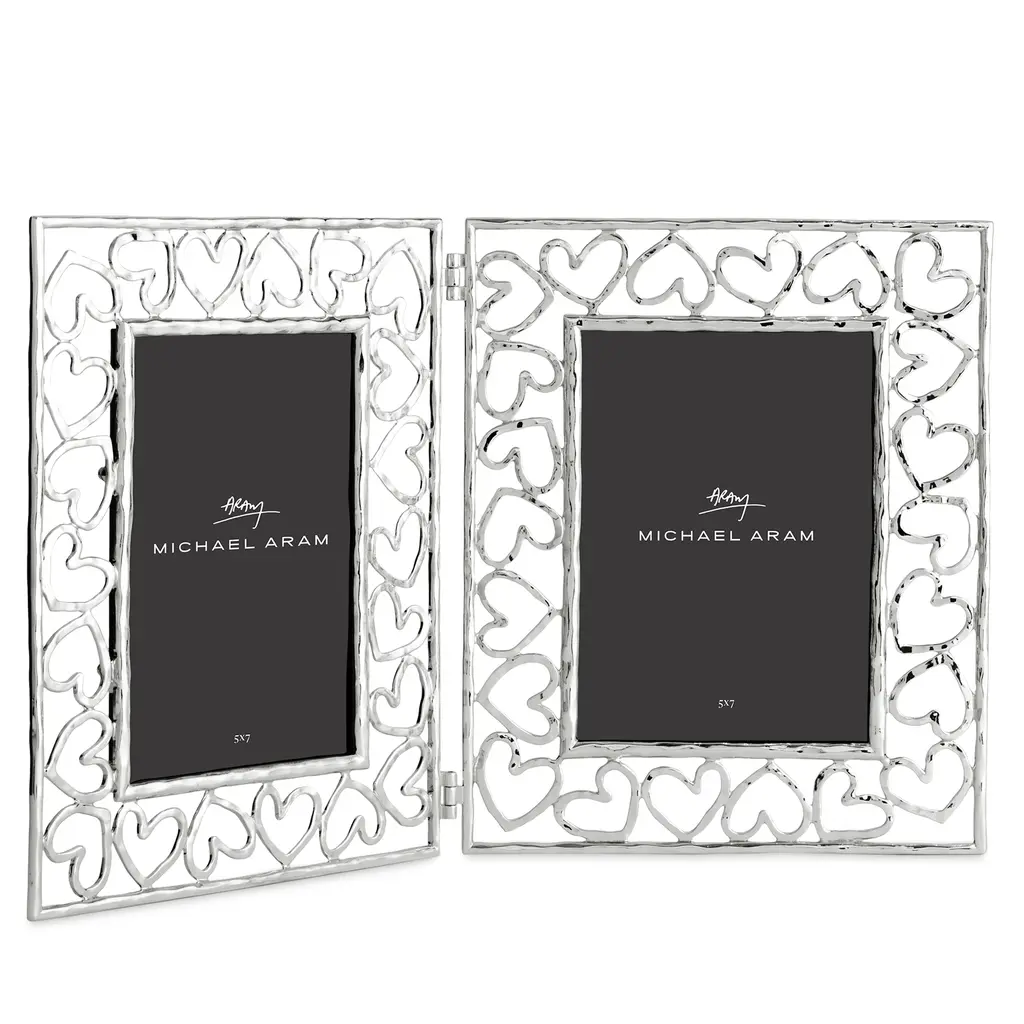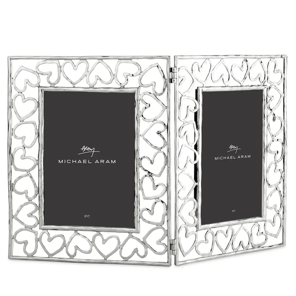 Michael Aram dancing heart photo frames in tarnish resistant silverplate. Ideal for someone you love. The Heart Collection is built around the simple but universal symbol of love, hope, friendship and caring. The shape of the heart creates instant responses in us all and carries a world of meaning that changes according to the intent of both the giver and the recipient.