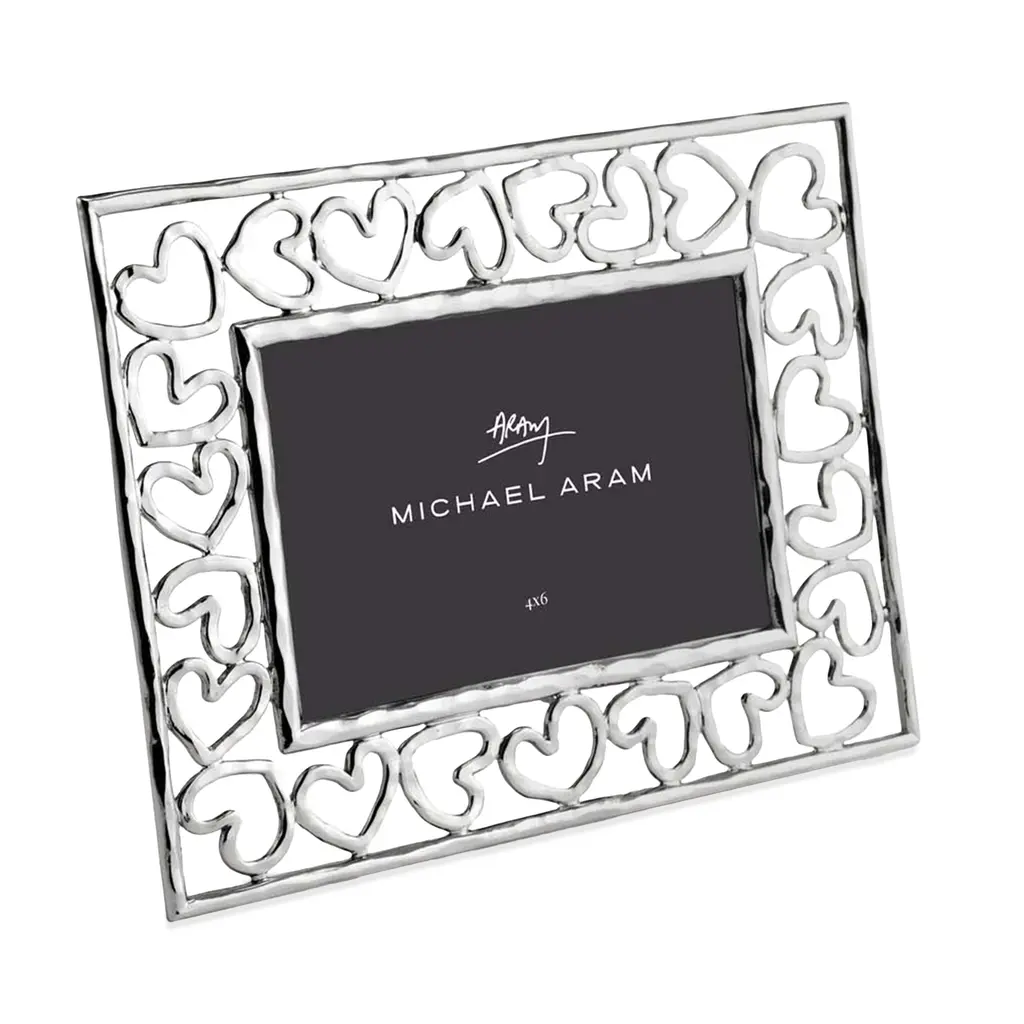 Michael Aram dancing heart photo frames in tarnish resistant silverplate. Ideal for someone you love. The Heart Collection is built around the simple but universal symbol of love, hope, friendship and caring. The shape of the heart creates instant responses in us all and carries a world of meaning that changes according to the intent of both the giver and the recipient.